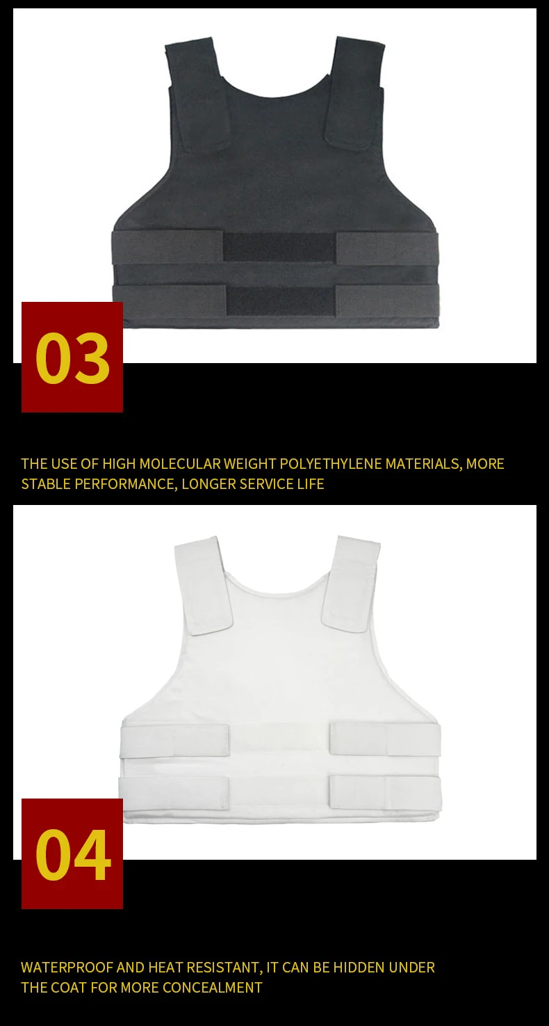 Especificaciones:Material exterior: Poliéster AlgodónMaterial del área de protección: UHMW-PEColor: blanco y negroTalla asiática: S-XLNivel de protección: Estándar de EE. UU.: 0101.06 Nivel IIIAParada: detiene 9 mm Para FMJ y.44 Magnum JHP;Parte de protección: delantera y traseraSi no puede determinar el tamaño, ¡no dude en contactarnos!Nuestra talla es asiática.Consulte la siguiente tabla de tallas y verifique cuidadosamente el tamaño de su cuerpo antes de comprar.Información sobre el tamaño (CM)