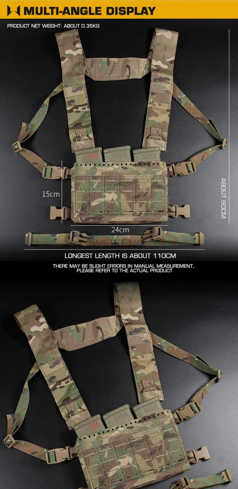 NOMBRE DEL PRODUCTO: MK5 TACTICAL CHEST RIG ARTÍCULO COLOR DEL PRODUCTO: NEGRO MATE/GRIS LOBO/VERDE RANGER/MARRÓN COYOTE/ MULTICAM/MULTICAM BL ACK PRODUCTO MATERIAL DEL PRODUCTO: TELA DE CORDURA, VELCRO IMPORTADO EN EE. UU. ESCENA APLICABLE: ACTIVIDADES DE EQUIPO, JUEGOS TÁCTICOS, ACCESORIOS DE PELÍCULA