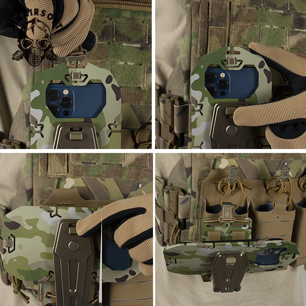 Chaleco táctico Molle, accesorios, correa para el pecho, tablero de navegación plegable, soporte giratorio para teléfono, estilo S & S, ligero, multifuncional