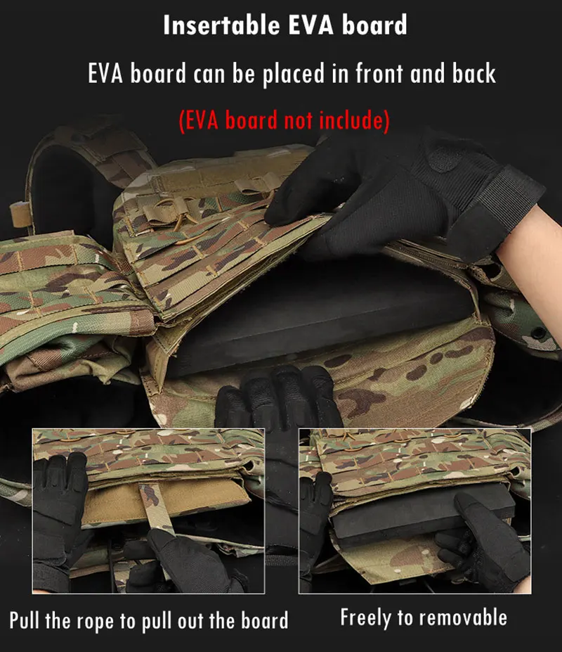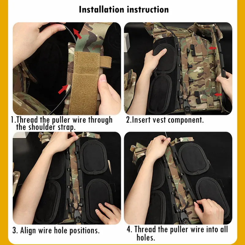 ●La parte delantera y trasera del chaleco se pueden colocar con placas a prueba de balas.