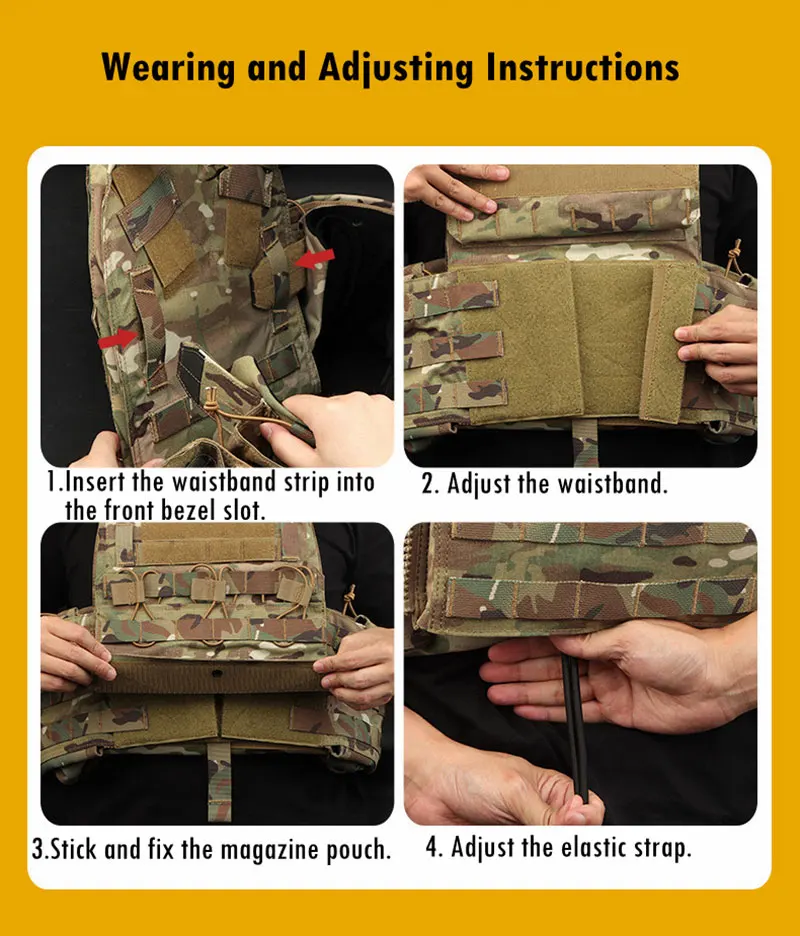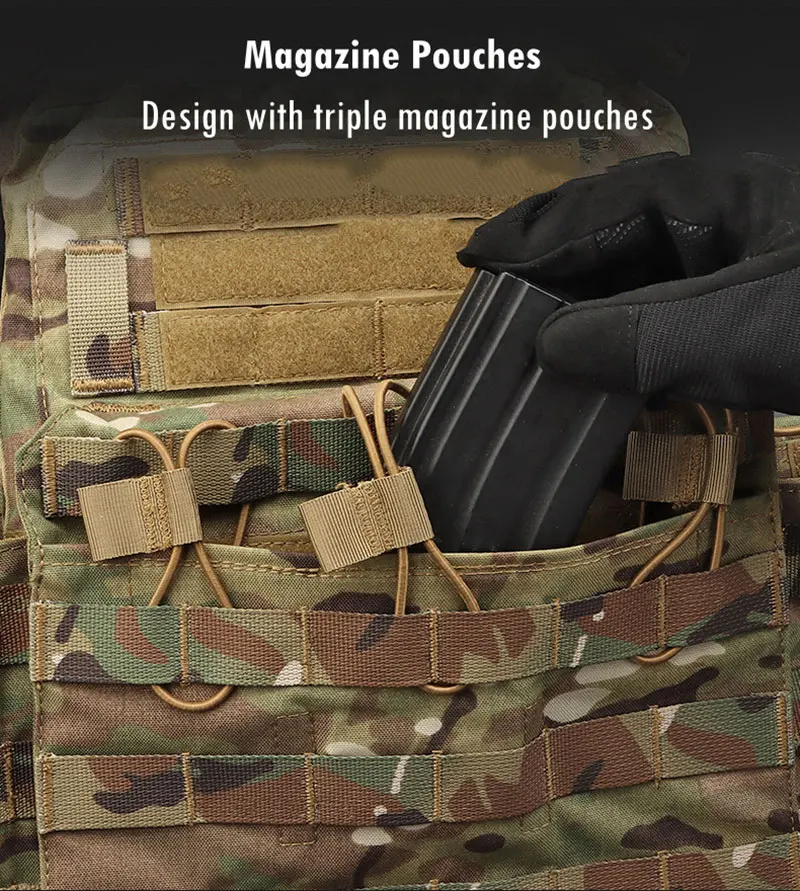 ●Compatible con sistema Molle. Coloca más bolsas u otros artículos en la correa Molle delantera o trasera. Diseño con bolsillos triples para revistas en la parte delantera.