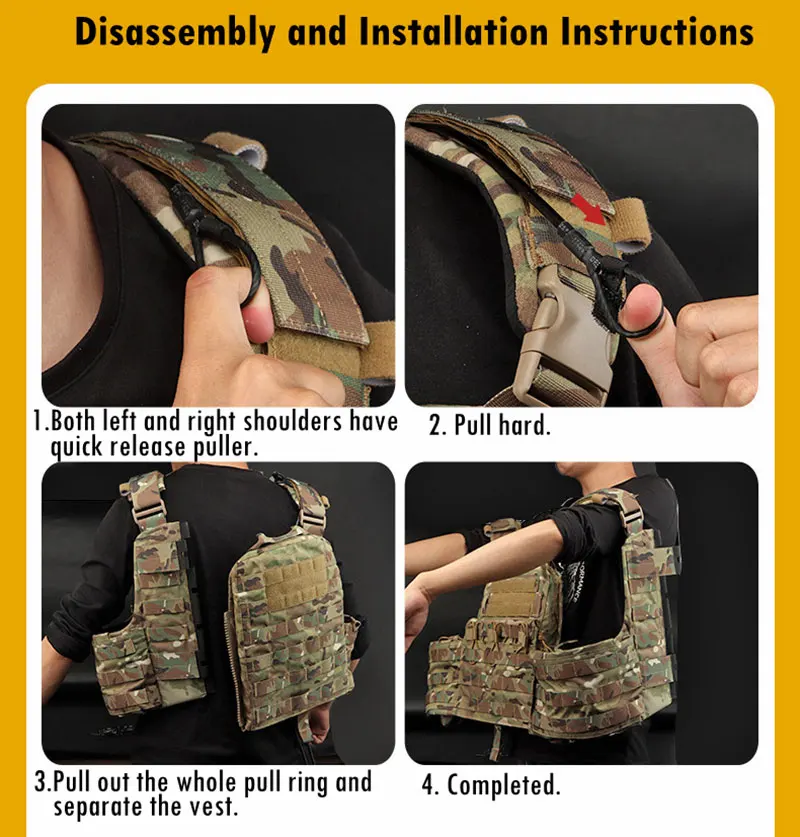 ●El chaleco se puede desmontar rápidamente para un uso y desmontaje rápidos.