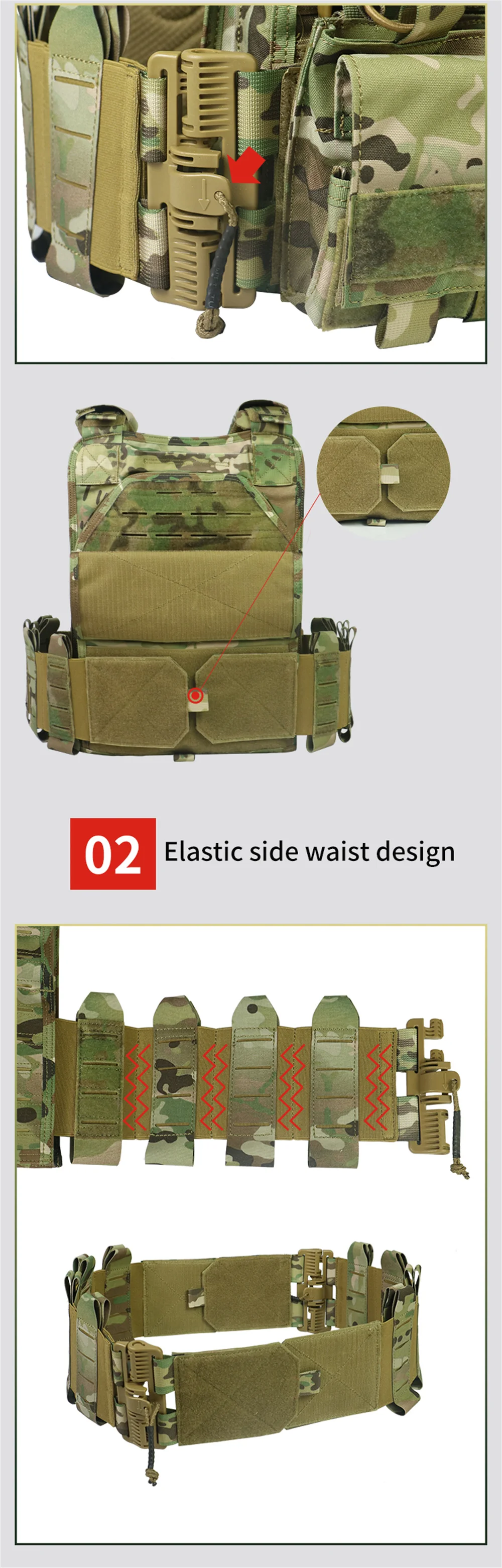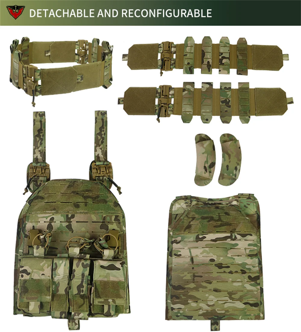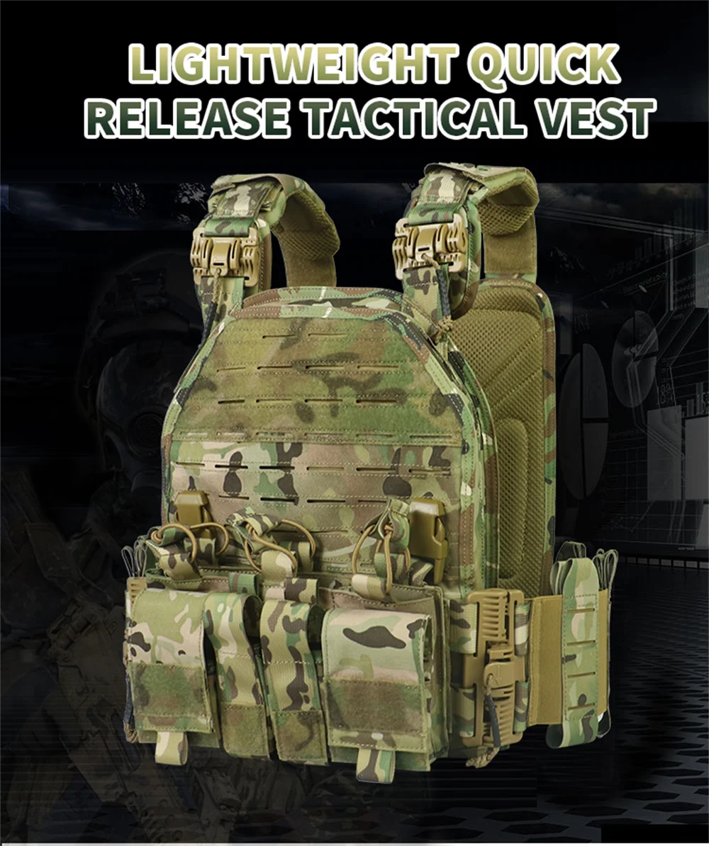 Chaleco táctico MOLLE de camuflaje para exteriores, equipo de protección de combate, desmontaje rápido, 1000D, 6094