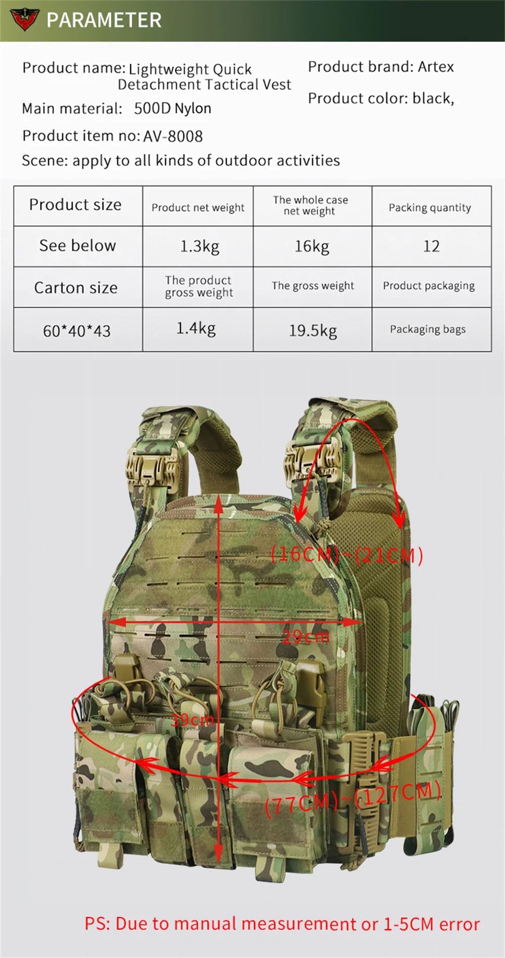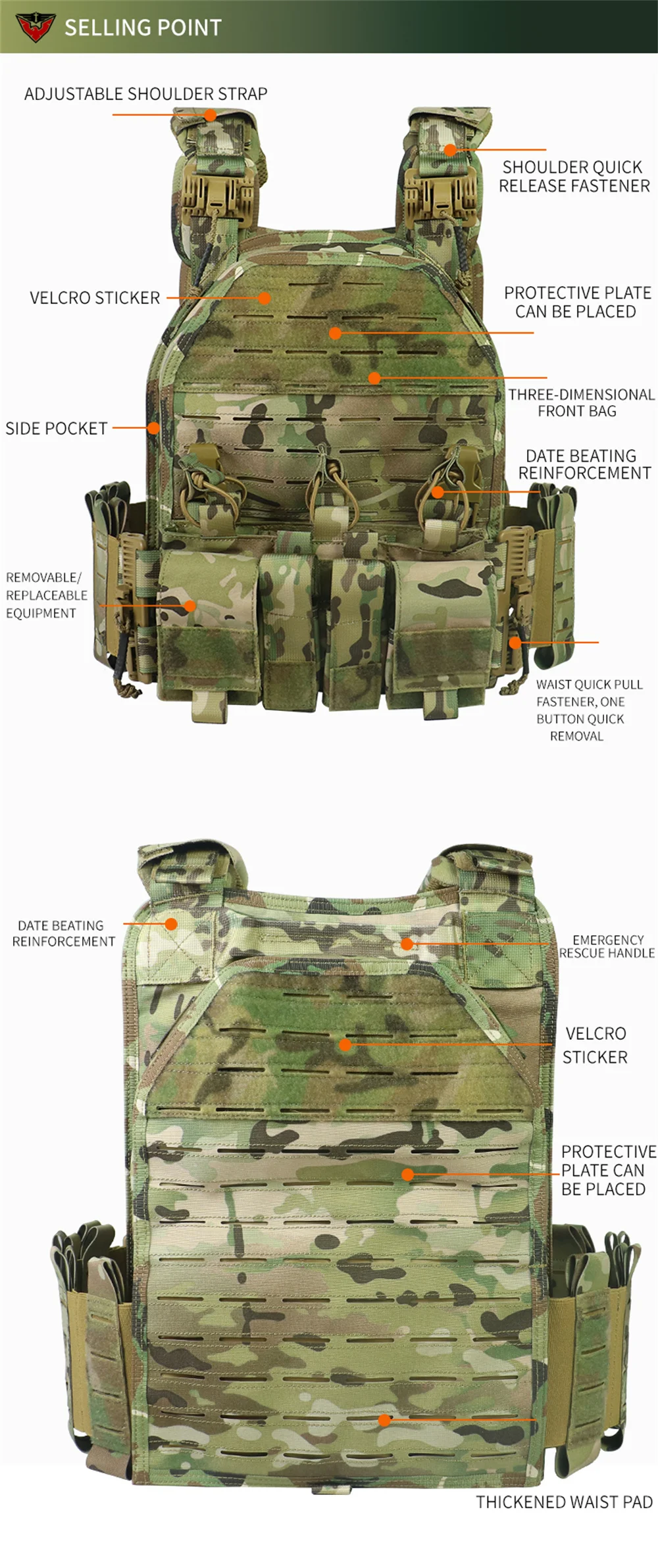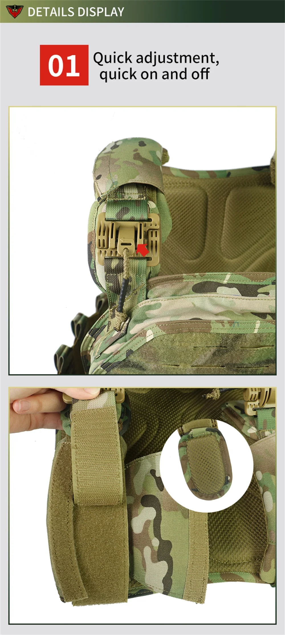 Chaleco táctico MOLLE de camuflaje para exteriores, equipo de protección de combate, desmontaje rápido, 1000D, 6094