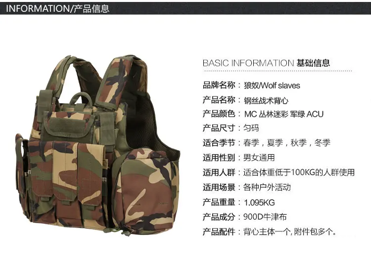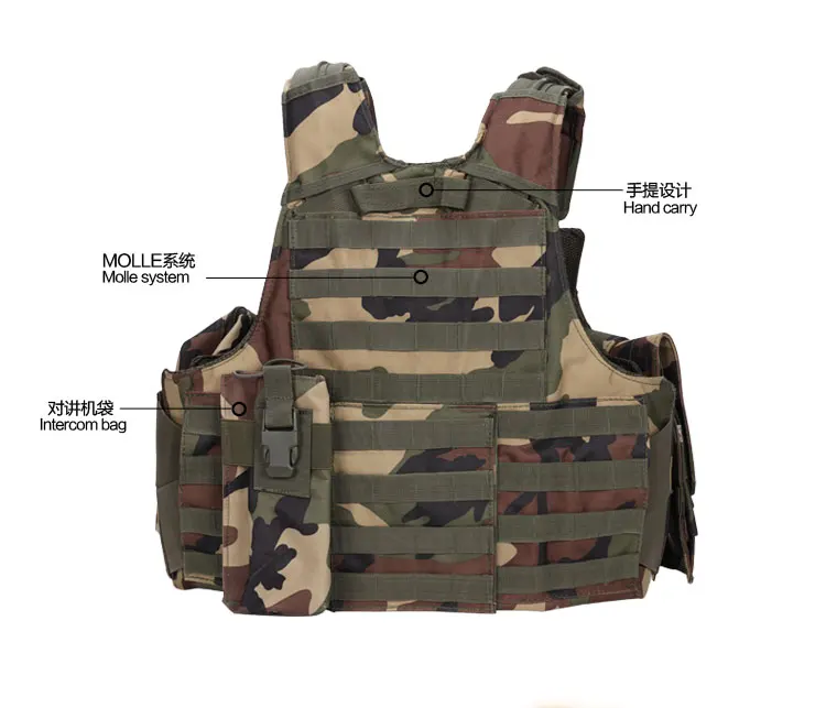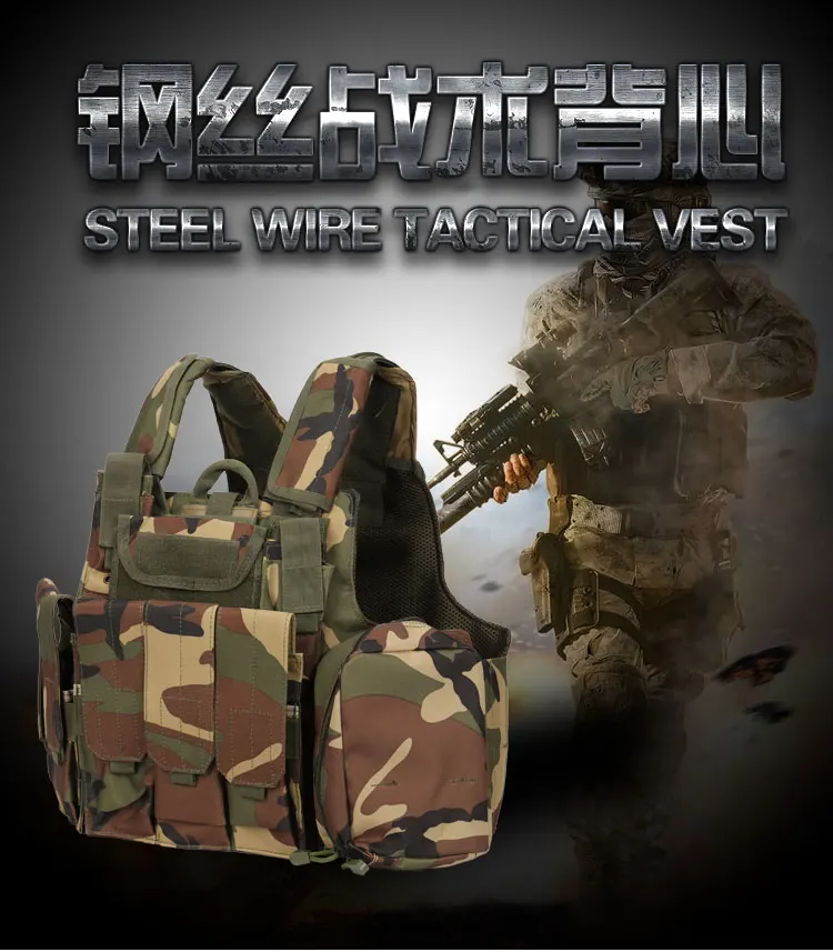 Chaleco táctico para ciclismo al aire libre, chaleco táctico Molle portador, armadura corporal, chaleco antibalas, placas de comando de alambre de acero con bolsas
