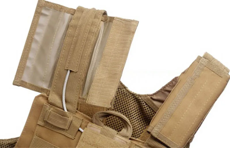Capa intermedia en el pecho y la espalda para llevar placas de armadura (placas no incluidas), sistema de ventilación de malla trasera transpirable para mayor comodidad y liberación de calor