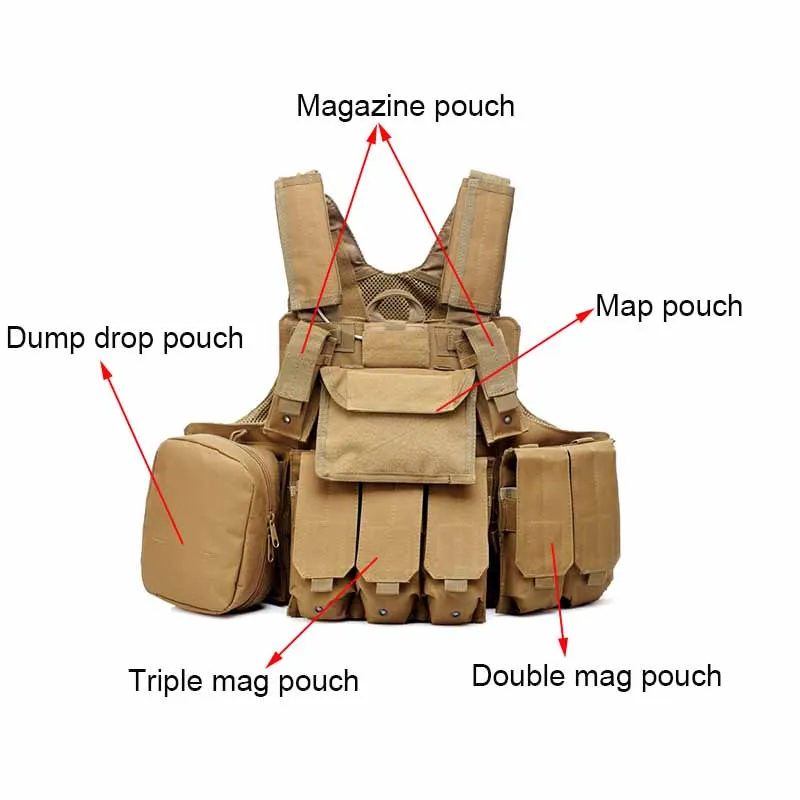 Un chaleco táctico de utilidad hecho con nailon de alta calidad diseñado para la caza al aire libre,