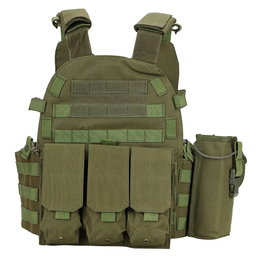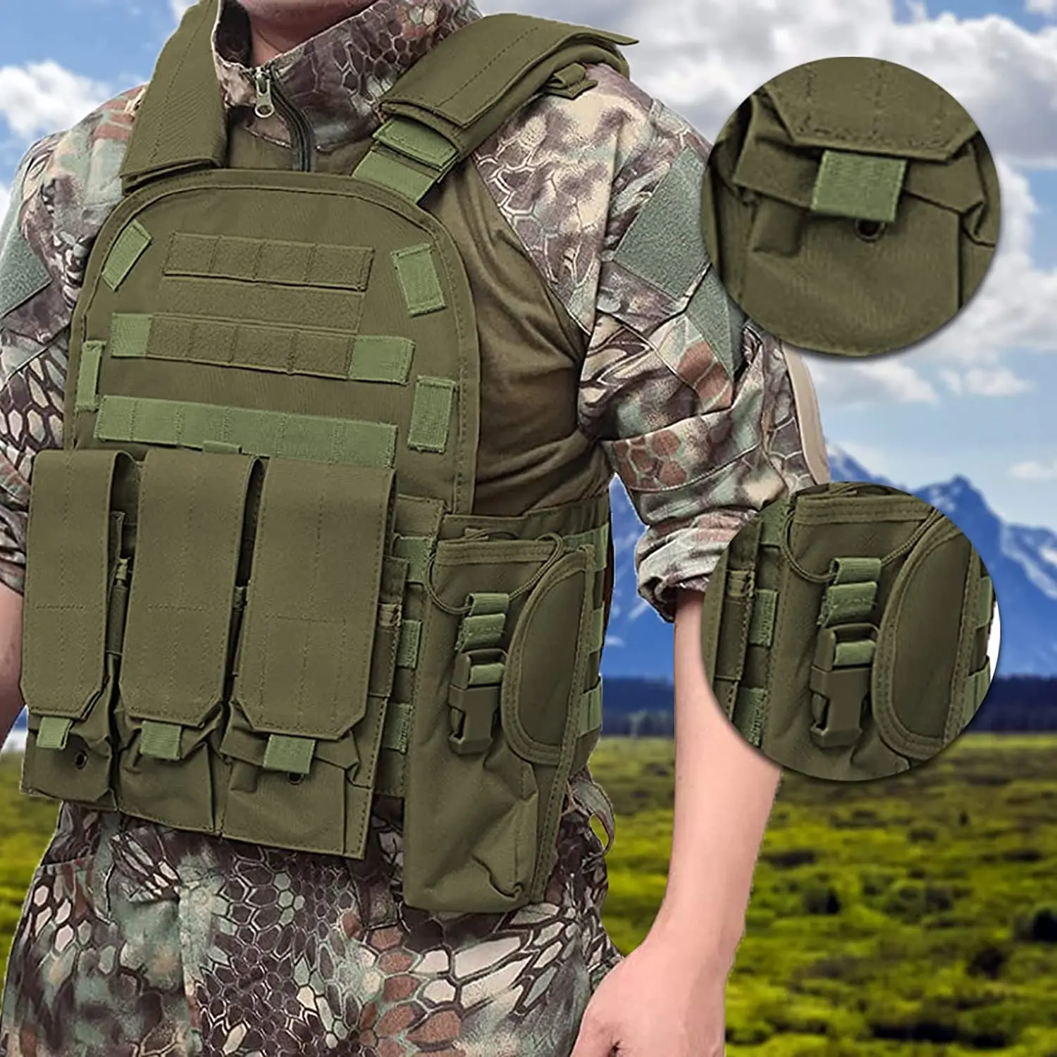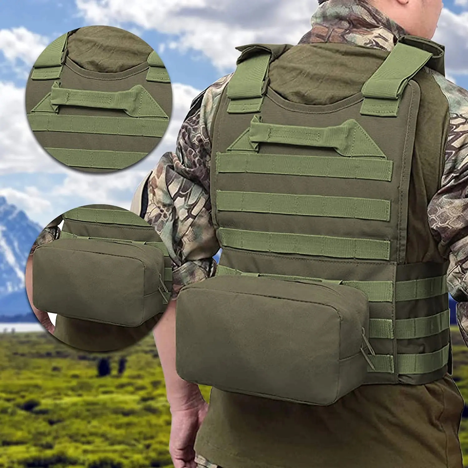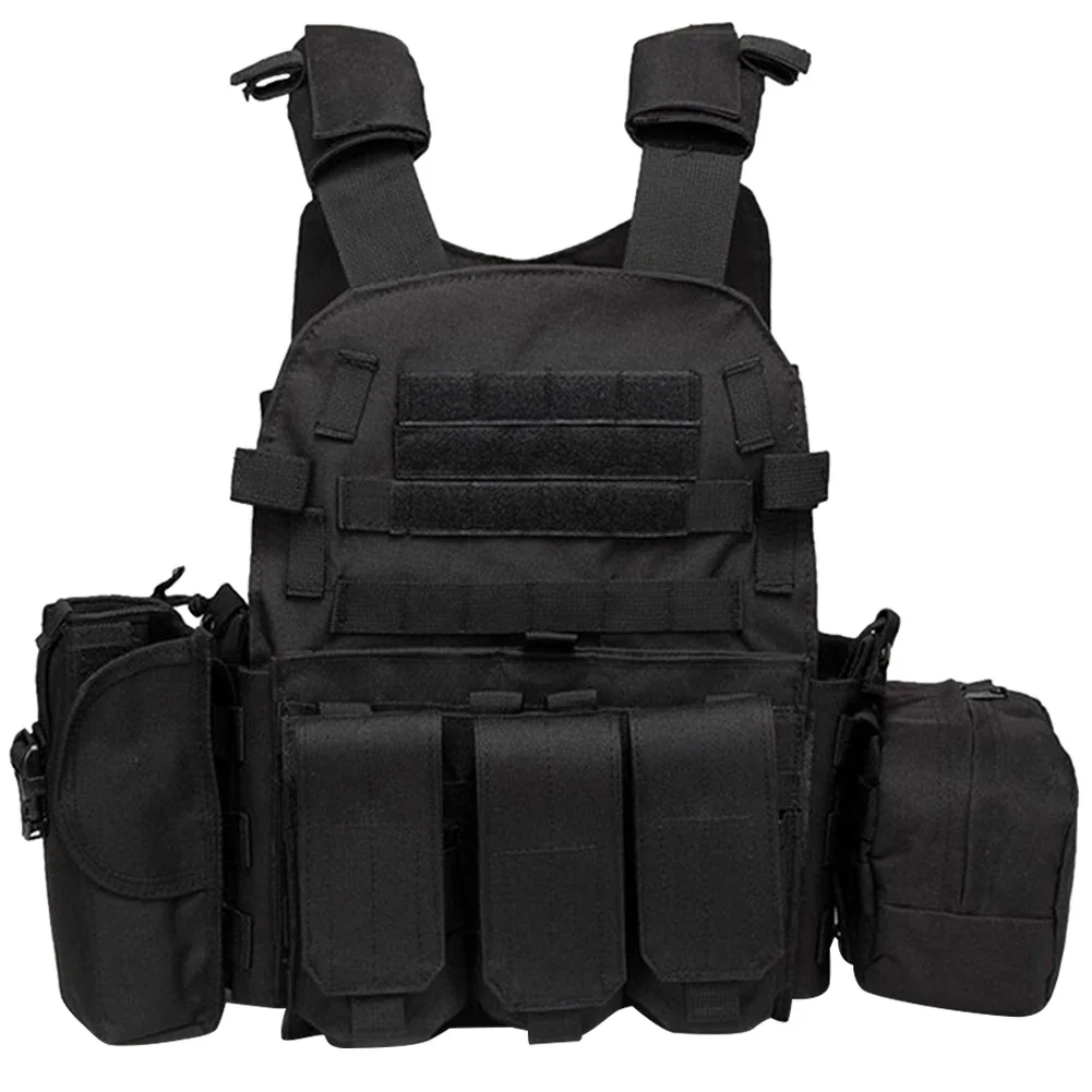 Chaleco de nailon de camuflaje para caza, chaleco portador de placa, armadura corporal, chaleco Molle multifuncional, ajustable para hombres y mujeres, equipo Airsoft para Camping, viajes, deporte, ciclismo al aire libre Característica: 1. Nailon impermeable de alta resistencia y densidad: adopta material de nailon impermeable densificado de alta resistencia, gran funcionalidad, resistencia a los arañazos y durabilidad 2. Diseño de sellado de la cintura: Diseño de sellado de la cintura. El exterior del sellado de la cintura se puede agregar con una bolsa y proporciona ventilación, que cambia el chaleco de caza tradicional pesado y congestionado. 3. Hebilla de liberación rápida: el sistema de gancho rápido de hebilla de metal en la parte posterior del paquete es fácil de desmontar cuando no es necesario. 4. Hombro y cintura ajustables: el chaleco de caza es ajustable. Molle en ambos lados es conveniente para sujetar múltiples bolsas u otros artículos, y también se pueden adjuntar insignias, lo cual es muy práctico y conveniente. 5. Ampliamente utilizado: Es un accesorio imprescindible adecuado para el entrenamiento de caza, camping, deportes al aire libre. Especificación: Origen: China continental Género: HOMBRE Temporada: primavera, verano, otoño, invierno Material: nailon Tejido: tela de nailon encriptado 600D Tamaño: 55cm/21 pulgadas de alto y 45cm/17,7 pulgadas de ancho Longitud del hombro ajustable La longitud de la cintura se puede ajustar a 120cm/47 pulgadas Color: marrón, negro, verde, CP, ACU