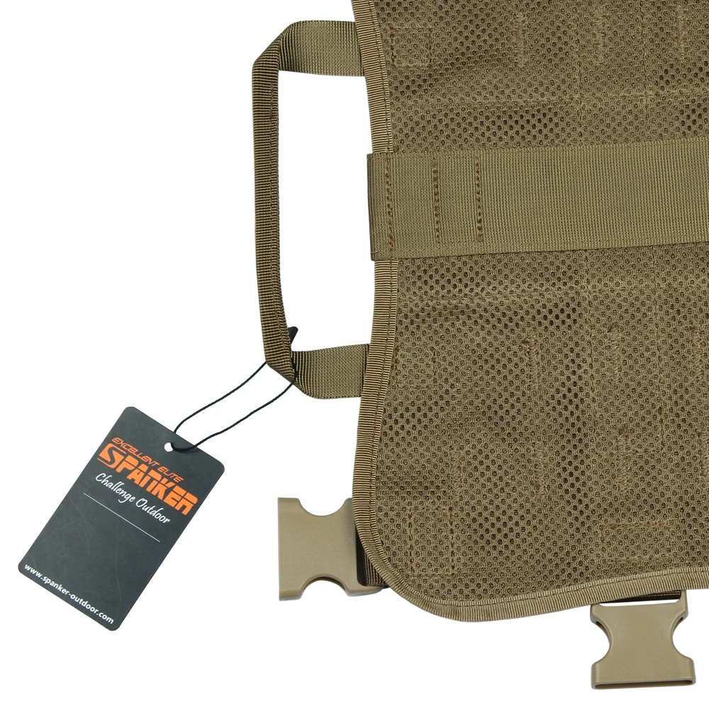El diseño es un sistema MOLLE para conectar otros accesorios como bolsas de revistas, botellas de agua, otros dispositivos, etc.