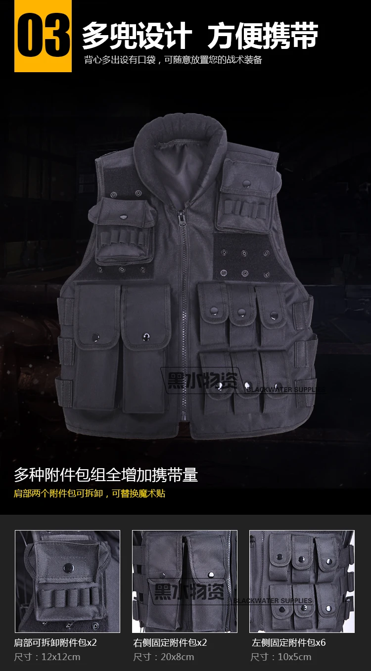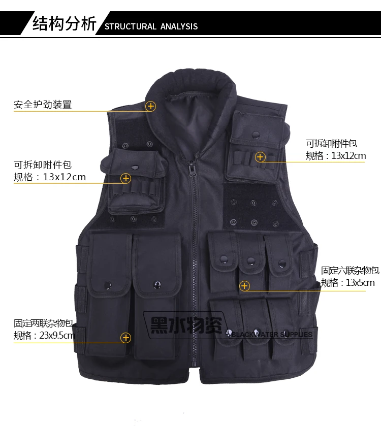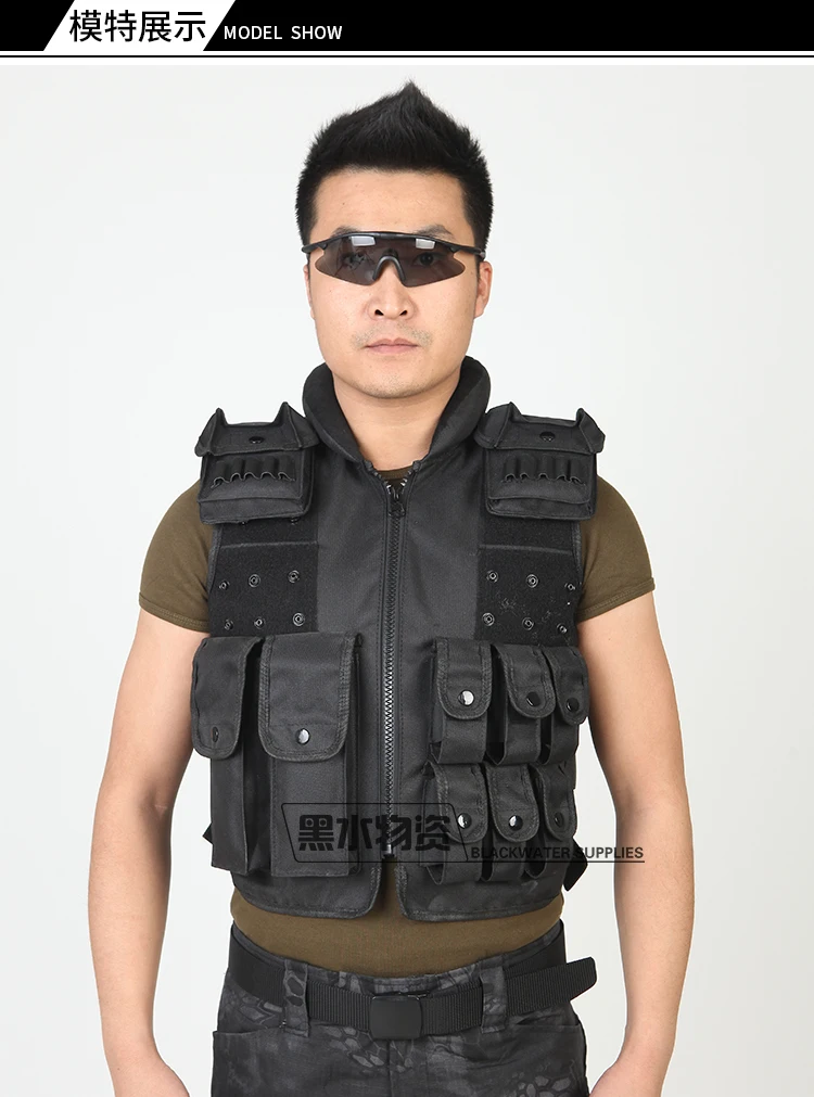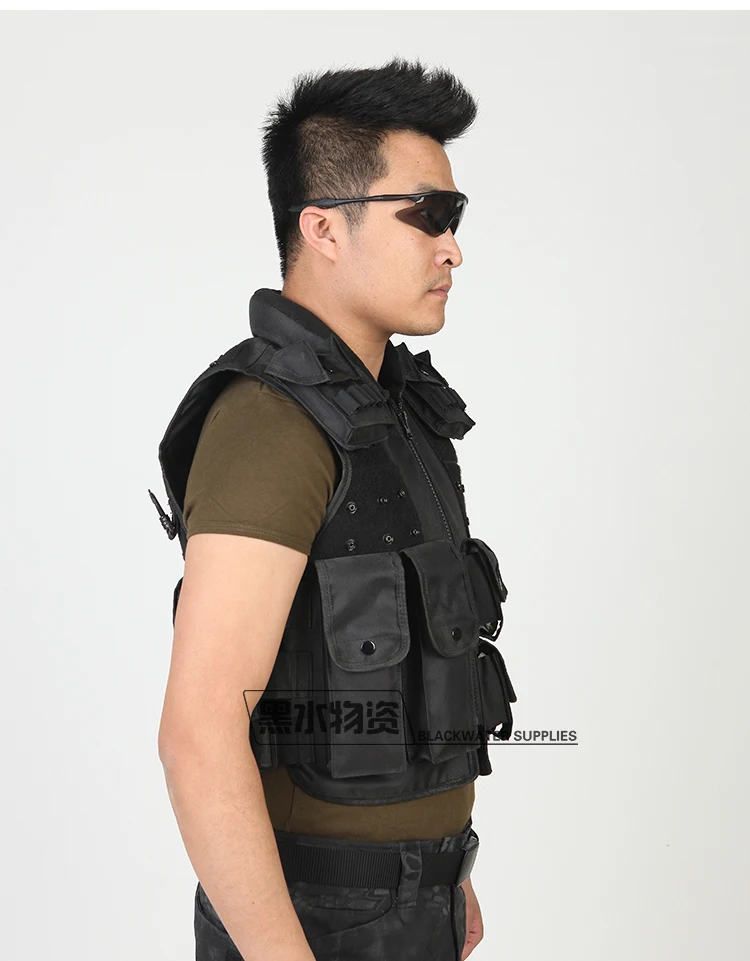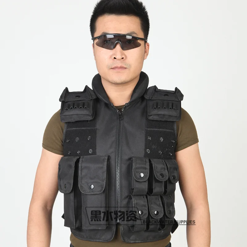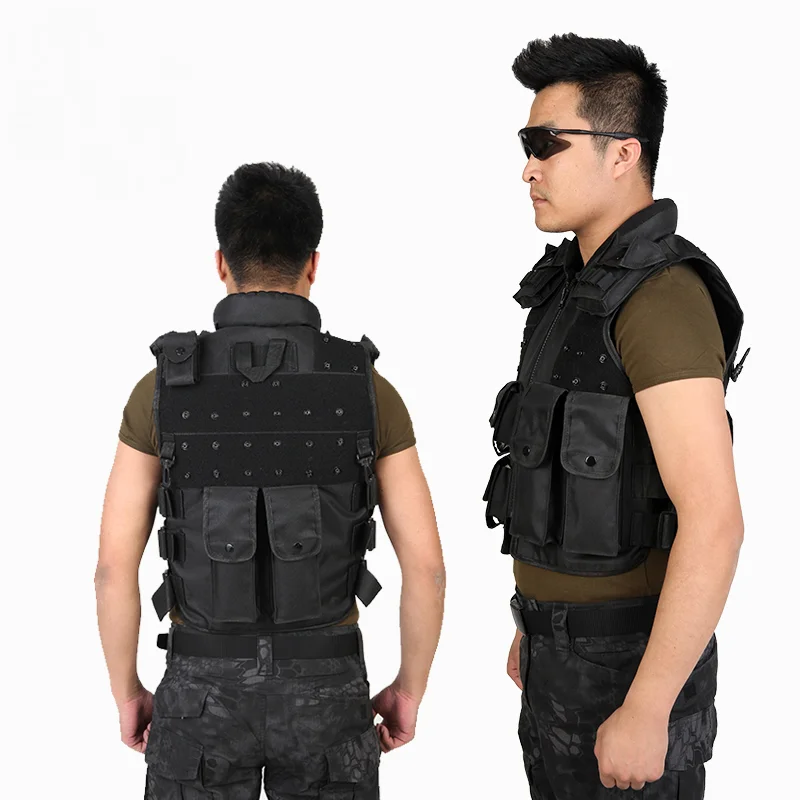 Chaleco táctico multibolsillo negro, chaleco protector de seguridad, bolsa de accesorios, armadura corporal Cs, equipo de fuerzas especiales