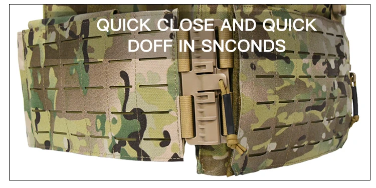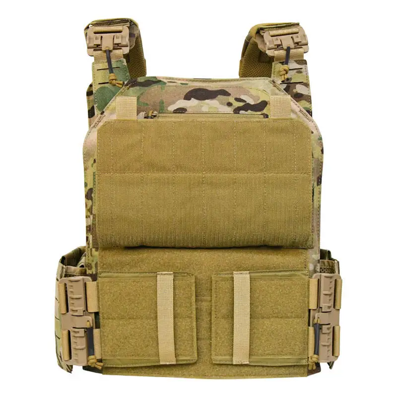 Nombre del producto:Chaleco portador de placaTamaño:Talla libre (talla única)Color:RG/MulticamMaterial:Tela de nailon 1050DCaracterísticas:A. Ajustador interno para adaptarse a todos los tamaños de placa comunes (SAPI M,L,XL)B. Bolsillo lateral para 6*8/6*6 placasC. Panel trasero con velcro, puede añadir acolchado extraíble;D. Panel frontal y trasero extraíble