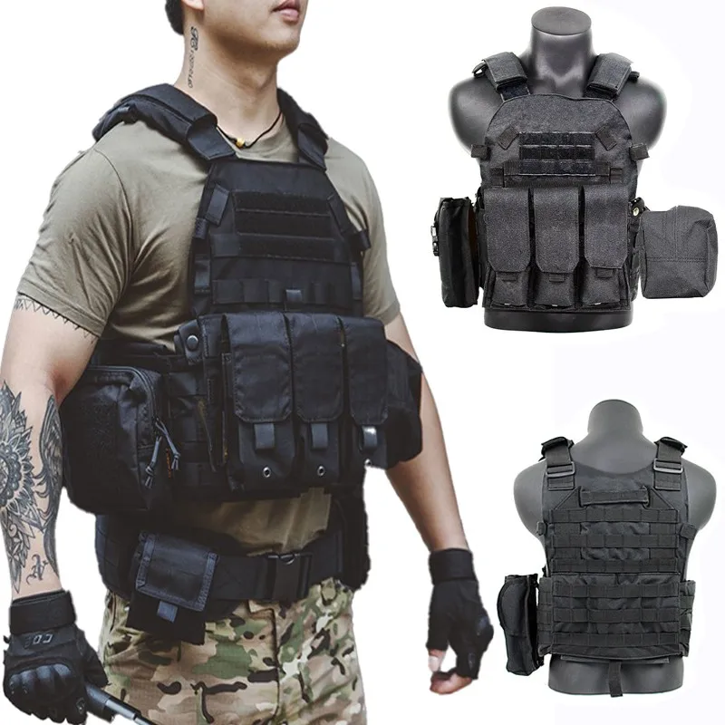 Comprar Chaleco táctico multifuncional para hombre, bolsa de entrenamiento ligera, chaleco negro para exteriores, equipo de campo CS, bolsillos, armadura corporal, 6094