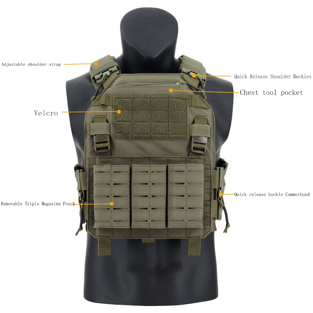 Chaleco táctico de nailon 1000D de nuevo estilo con bolsa de revista Triple, chaleco de entrenamiento de corte láser, chaleco de caza Airsoft de liberación rápida