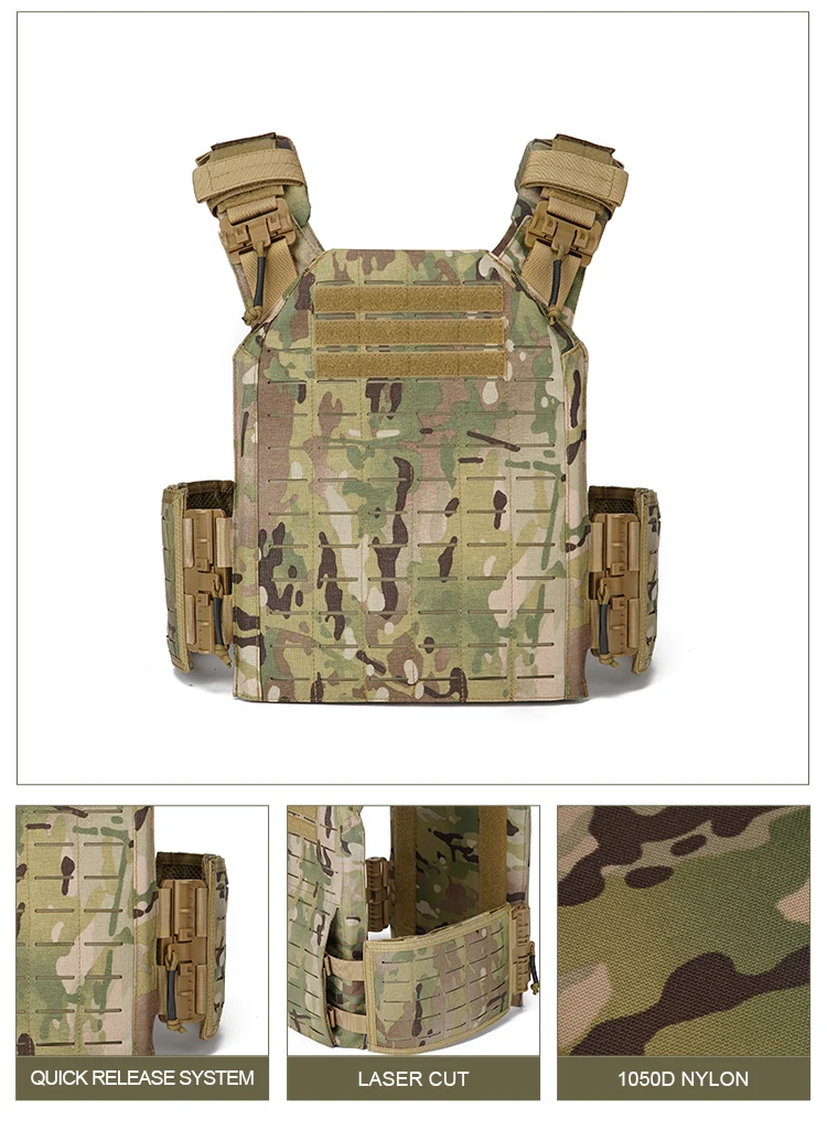Chaleco táctico de nailon 1050D para caza militar, Chaleco táctico de varias cámaras, portador de placa verde militar
