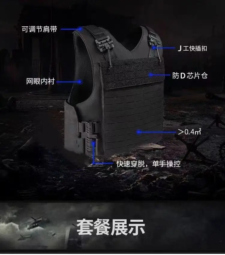 Chaleco táctico negro de liberación rápida láser, chaleco de liberación rápida Cs, traje de entrenamiento protector antipuñaladas Molle