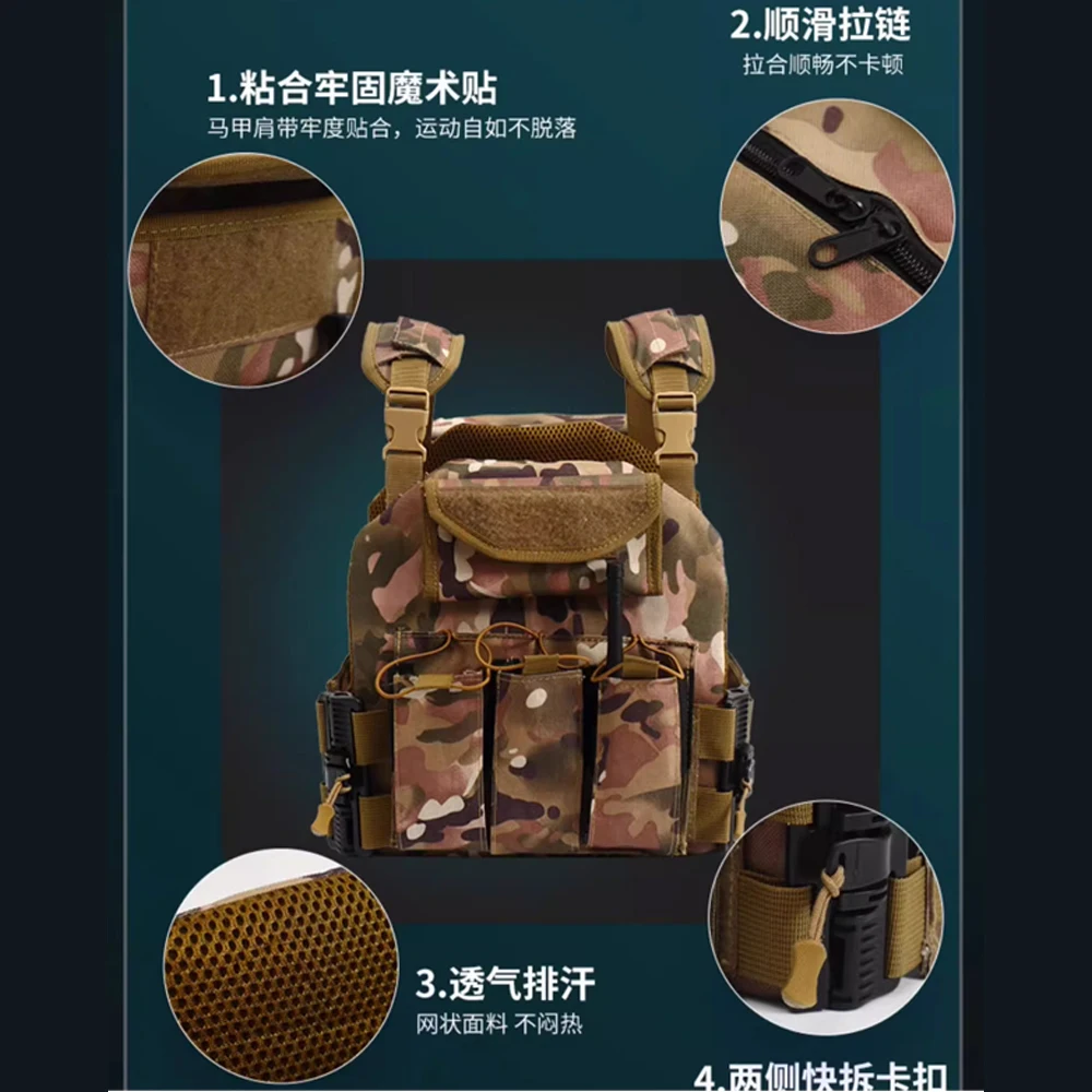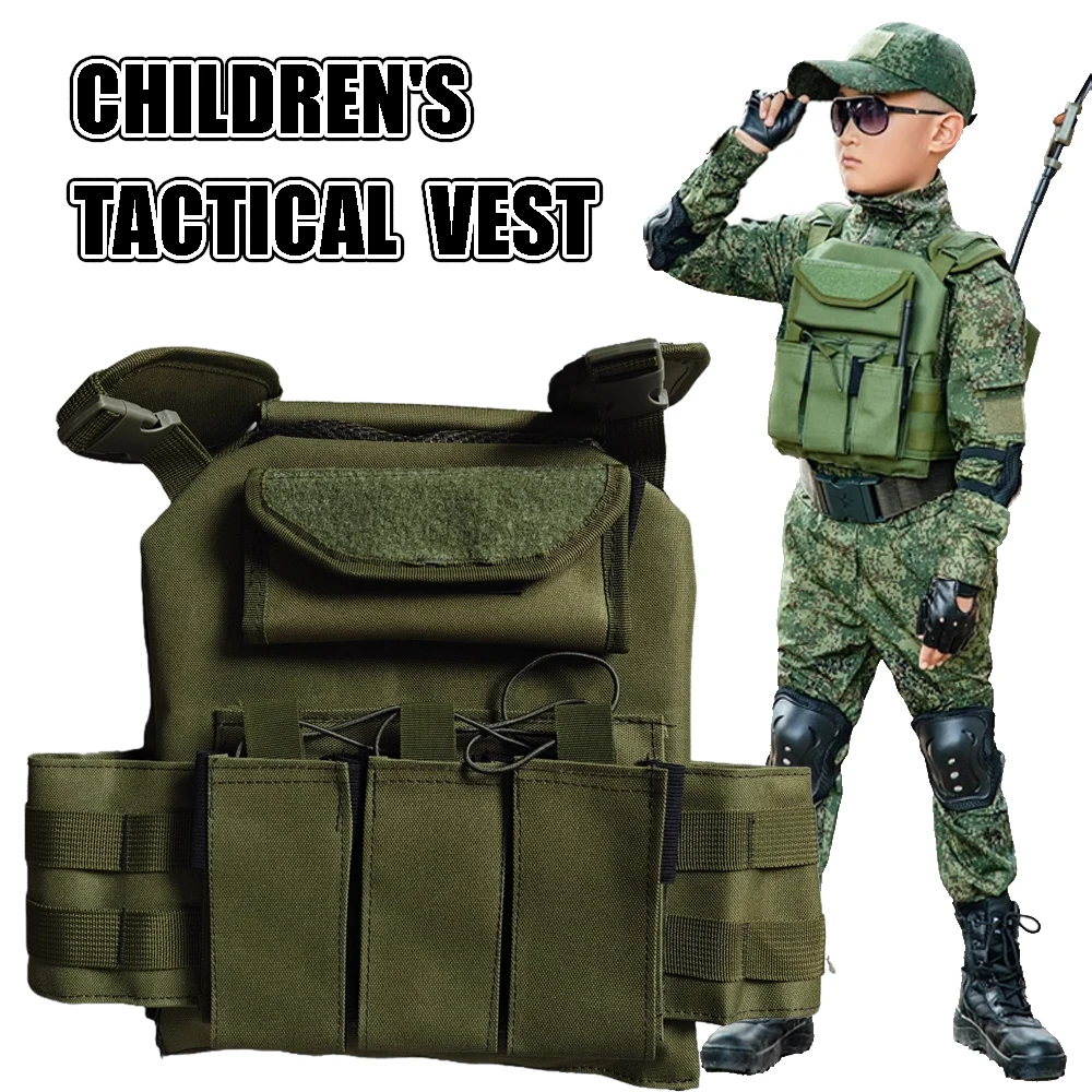 Chaleco táctico para niños, chaleco de combate de camuflaje para niños, juego de campo Cs al aire libre, chaleco protector de seguridad de combate, protección de entrenamiento