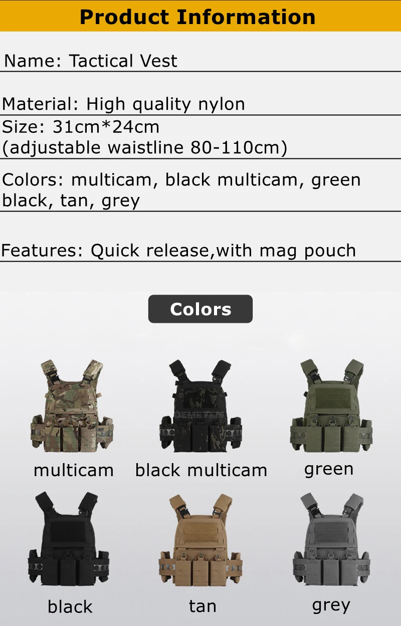 ✔ Colores: 6 opciones de camuflaje (BLK/CB/RG/WG/CP/BCP)
