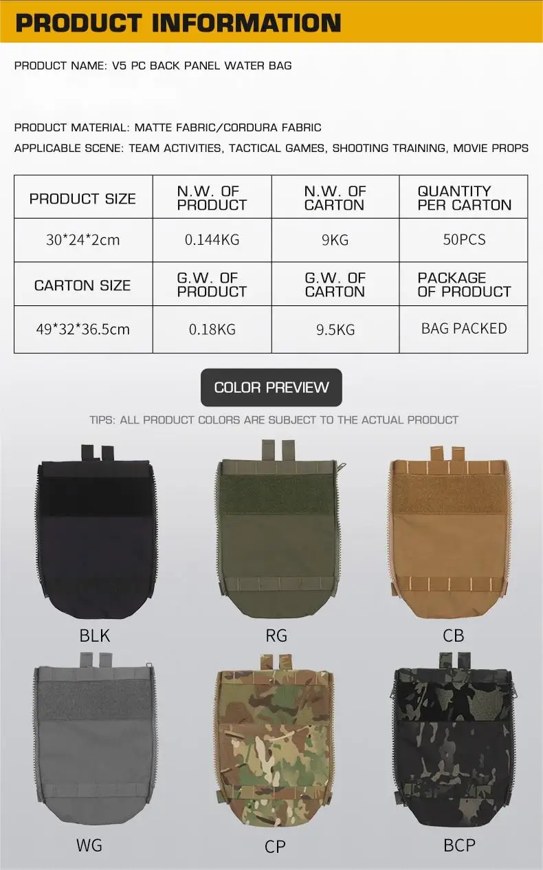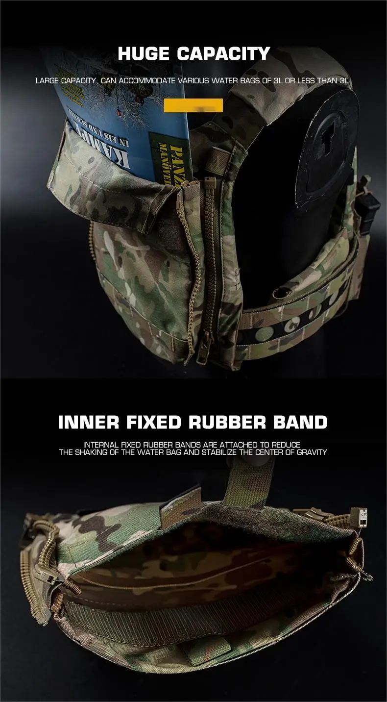 Chaleco táctico con Panel trasero, bolsa de agua FCPC V5, vejigas de hidratación, bolsa de almacenamiento de reservas de agua con chaleco portador de placa con cremallera lateral
