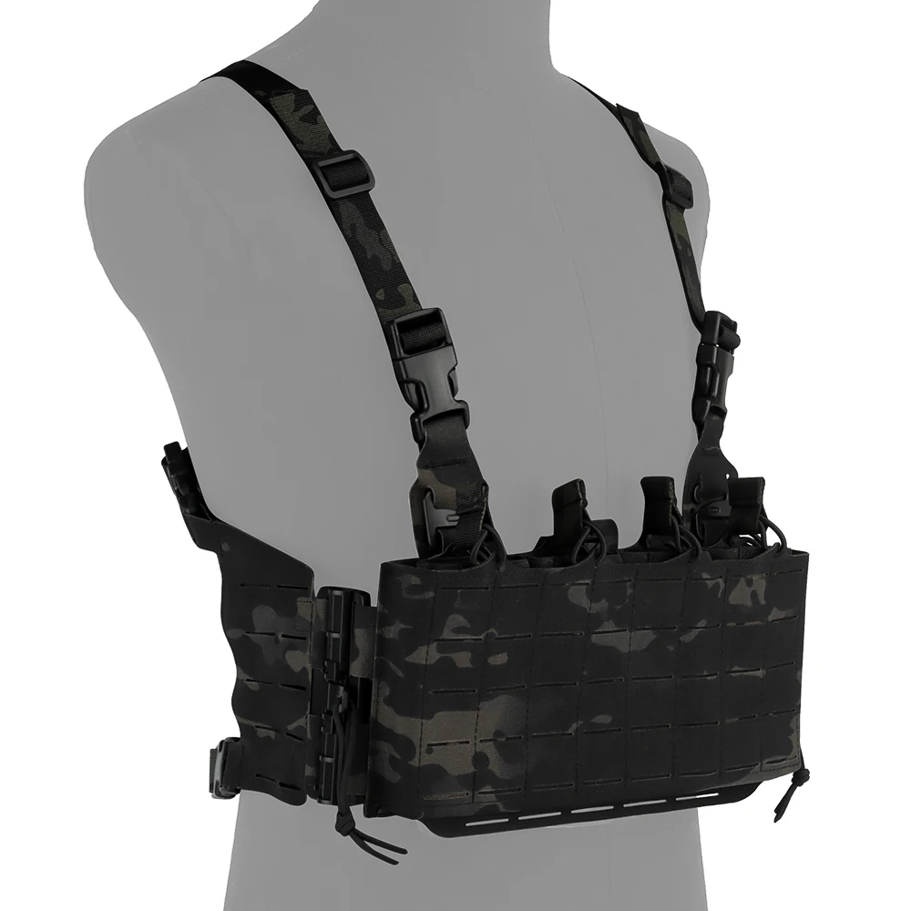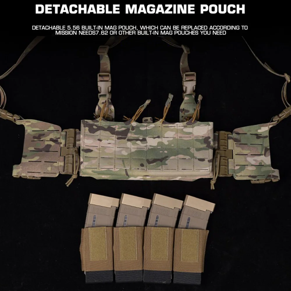 Chaleco táctico para el pecho, chaleco de asalto para entrenamiento de tiro en campo, soporte MOLLE de liberación rápida con bolsa para revistas cuádruple 5,56