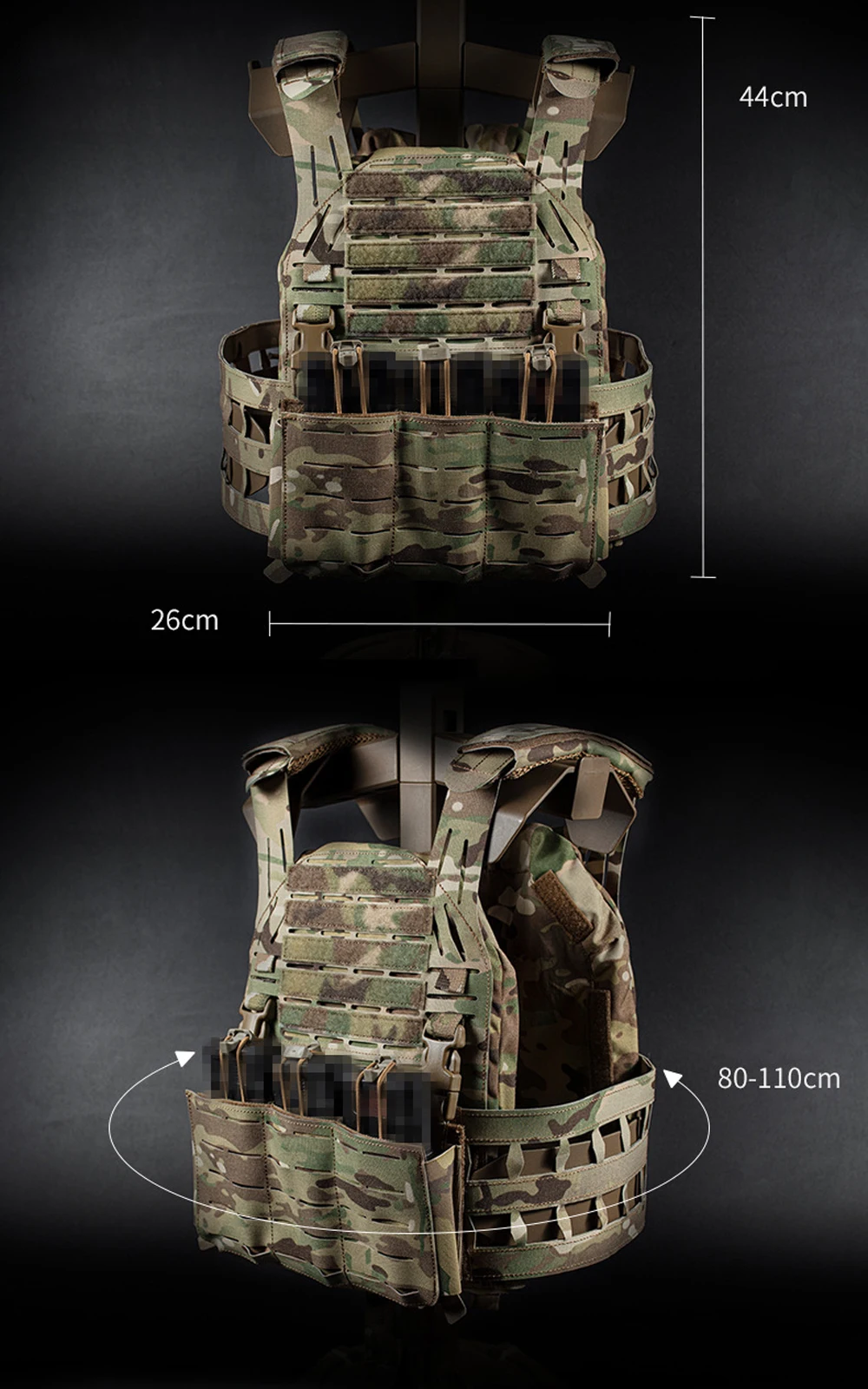 Sistema MOLLE cortado con láser delante de las bolsas de la placa y forro de malla en la parte posterior de las bolsas de la placa