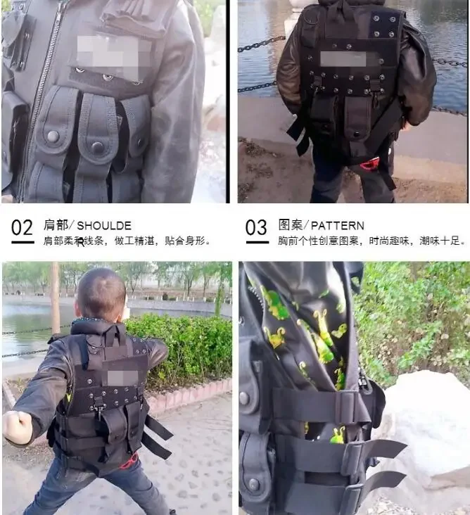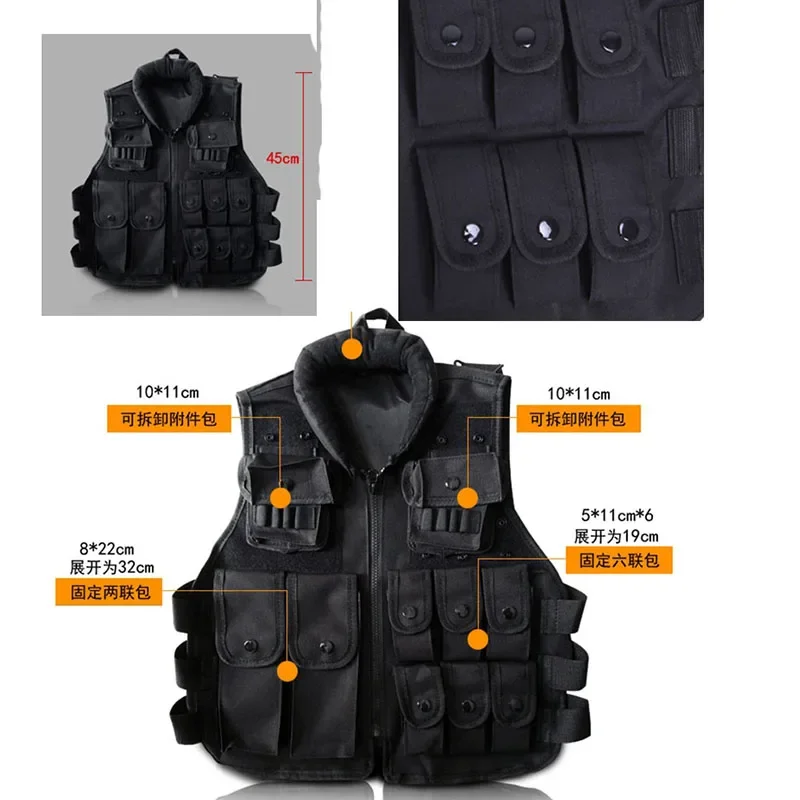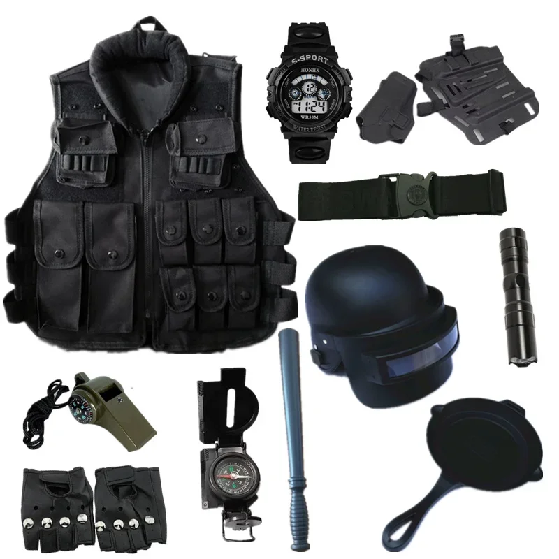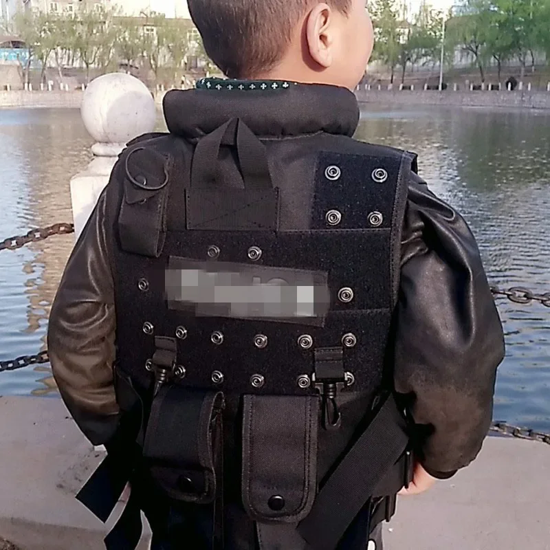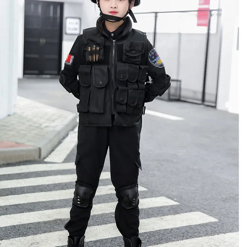 Chaleco táctico de policía para niños, ropa de combate SWAT, equipo de protección CS, uniforme negro