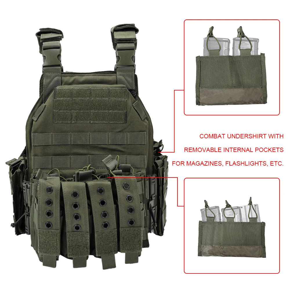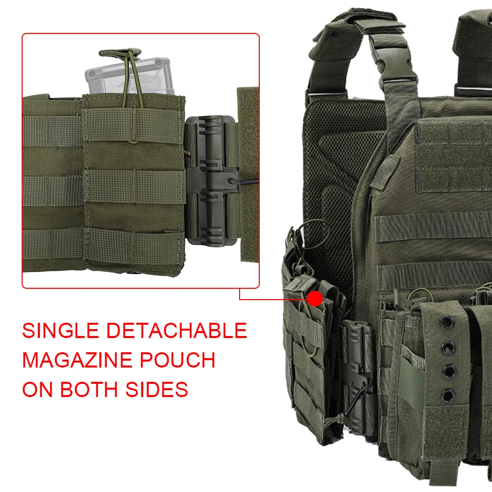 2. Modularidad. Completamente personalizable a su gusto, ya que puede quitar las bolsas de revistas de doble cara, ya que son inserciones de velcro. Lo mismo puede decirse de la bolsa triple MAG en la parte delantera.