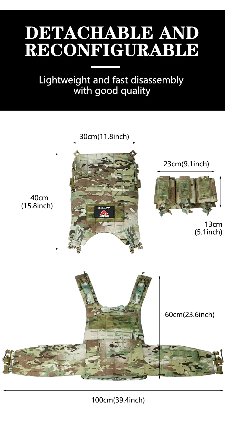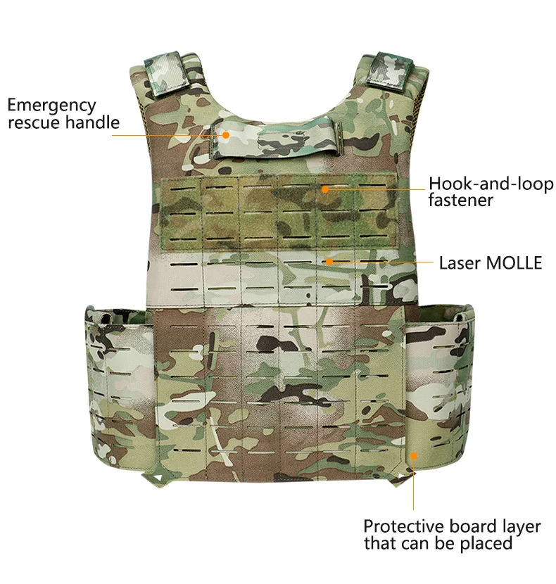 Chaleco táctico portador de placa de poliéster 1000d, bolsa Magezine con liberación rápida Molle Chaleco, bandolera táctica cortada con láser