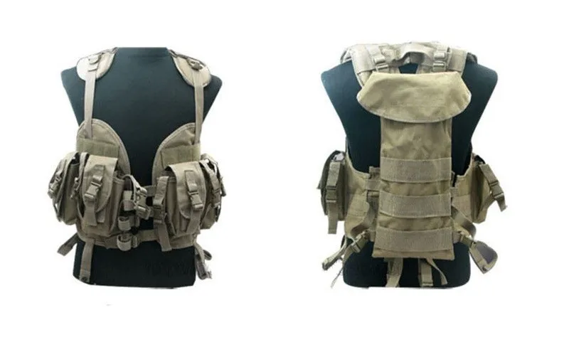 Asalto Combate Protección DE SEGURIDAD Chaleco táctico Hombres Senderismo al aire libre Caza CS Equipo de campo Camuflaje Seguridad Defender ChalecoMaterial: revestimiento repelente al agua de nailon de alta resistencia 600DTamaño:Tamaño del paquete de accesorios grandes: 15*8*4cmPequeñas bolsas de accesorios Tamaño: 11,5*3*1,5 cmTamaño del paquete de hidratación: 41*19 almacenar 3 litrosCaracterísticas:1, producción de material de nylon de alta densidad2. Hombro y cintura totalmente ajustables3, vestido con hebilla de liberación rápida4. El parche de Velcro se puede unir al chaleco5, bolsas y accesorios6,4 bolsas grandes de supermercado y cinco bolsas pequeñas de escombros7, paquete de hidratación en la parte posterior, que puede acomodar tres litros de agua8, cómodas correas de hombro acolchadas9. Diseño perfecto para juegos de guerra y otras actividades al aire libre