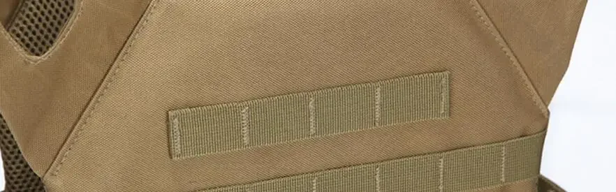 2: Diseño de cinturón molle delantero y trasero:Es conveniente equiparse con varias bolsas de accesorios.Diseño de correa adhesiva molle en el pecho, se puede pegar con adhesivo y otros equipos.