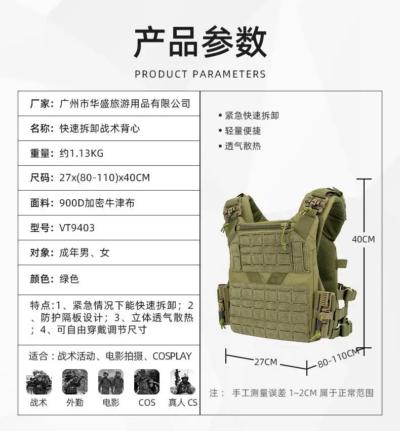 Chaleco táctico de rotura rápida, tela Oxford 900D multifuncional, ventilador del ejército rápido, Israel K19 masculino con personalizado