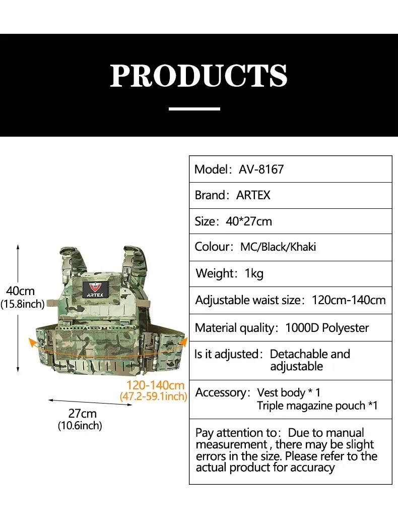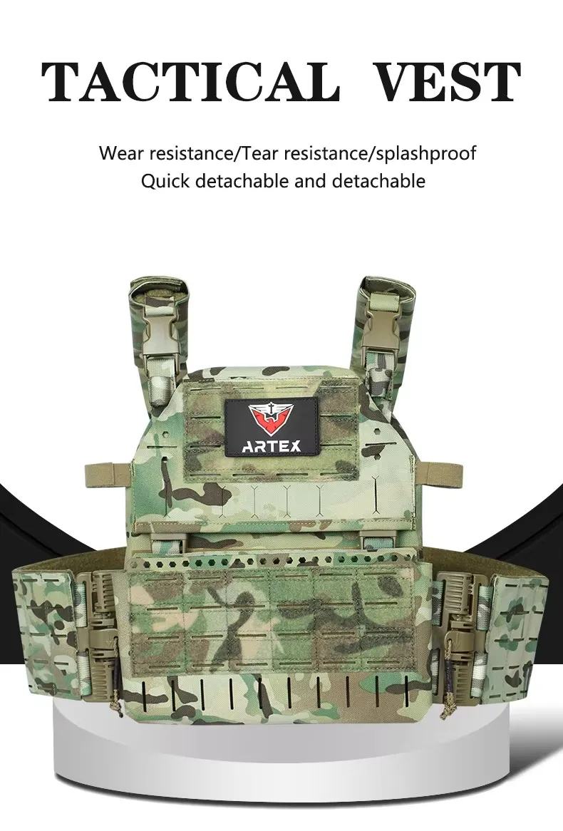 Chaleco táctico de seguridad de poliéster 1000D con Triple equipo, chaleco táctico Molle con corte láser de camuflaje, portador de placa de liberación rápida