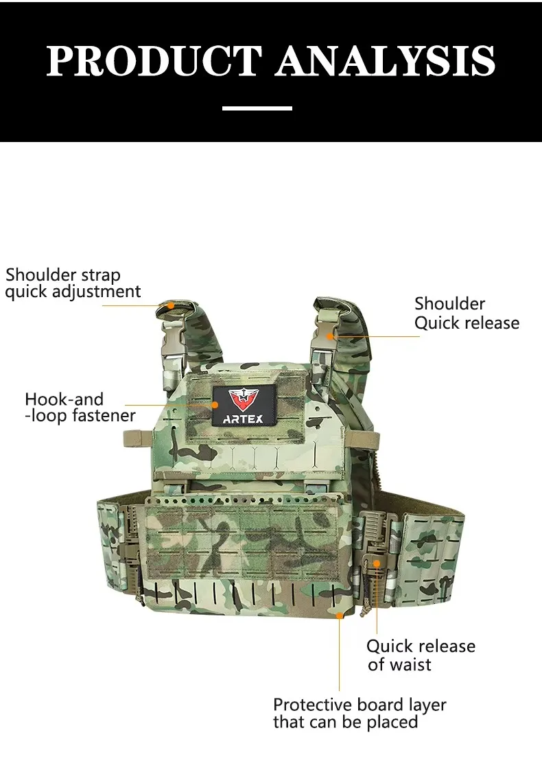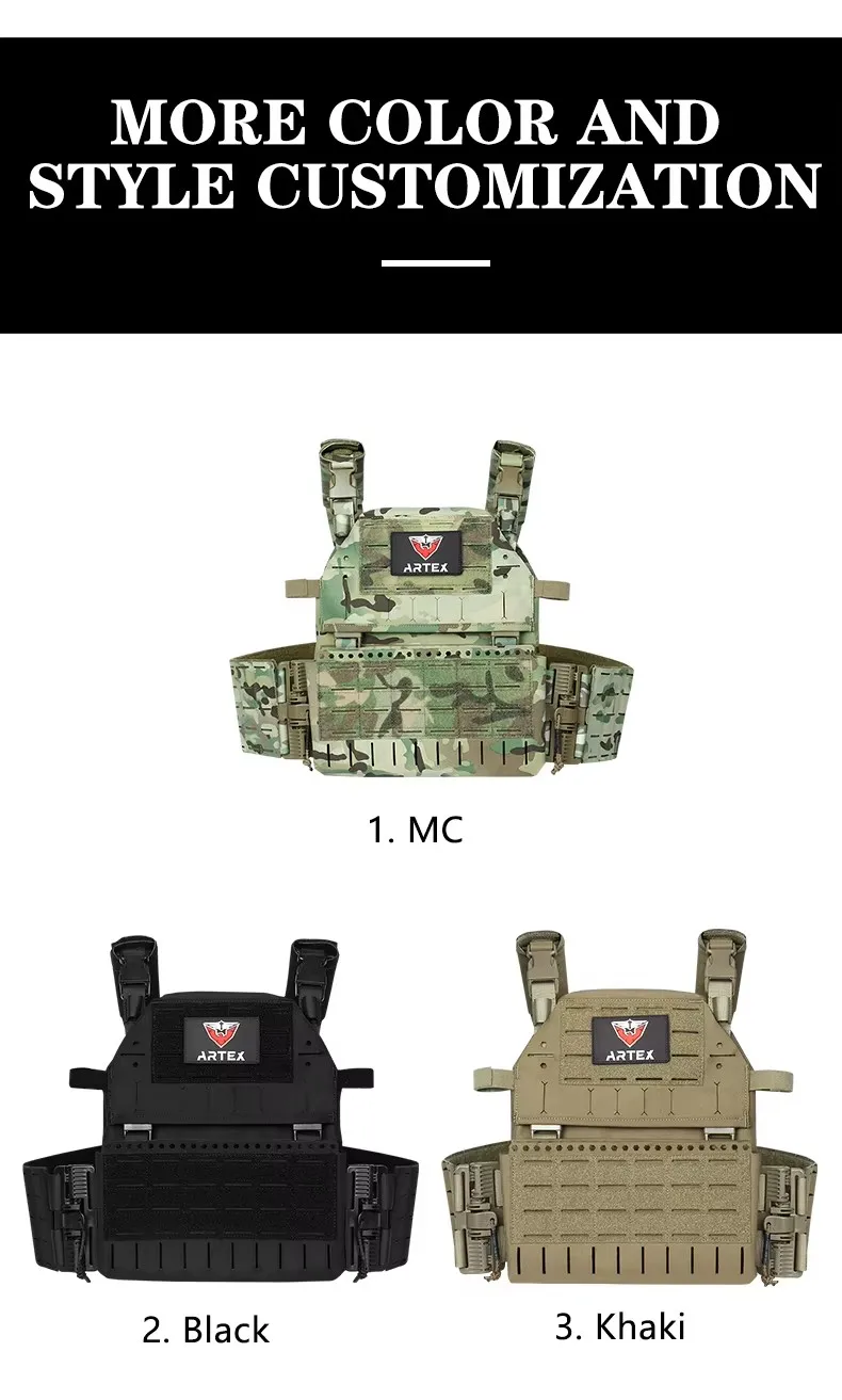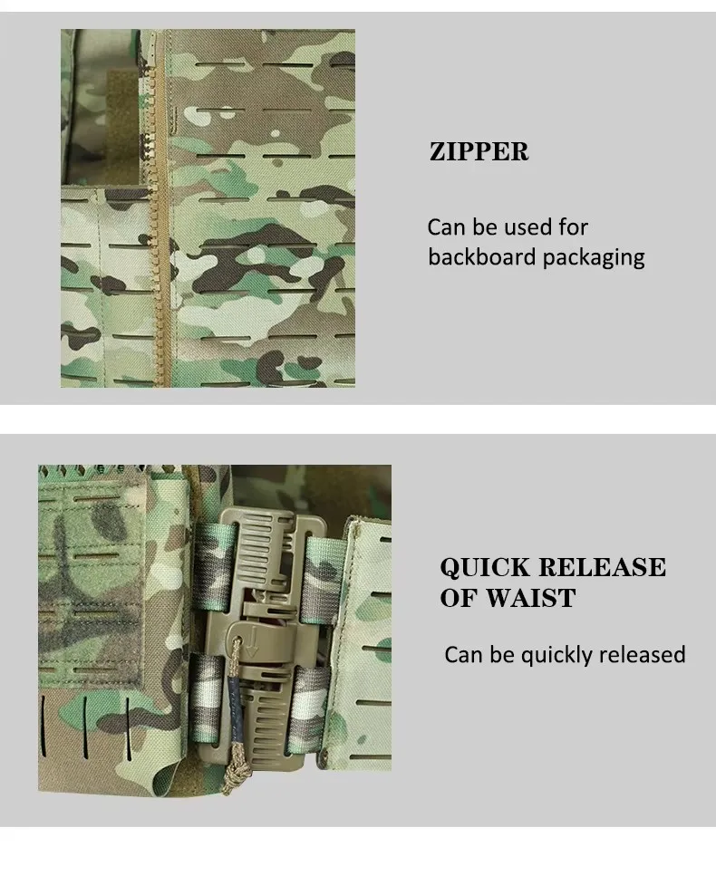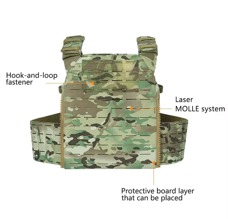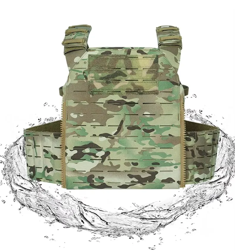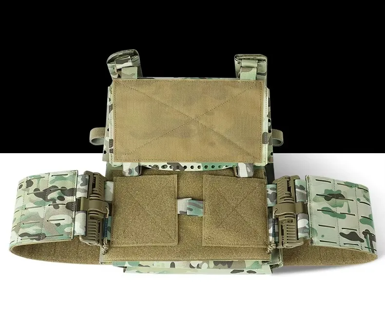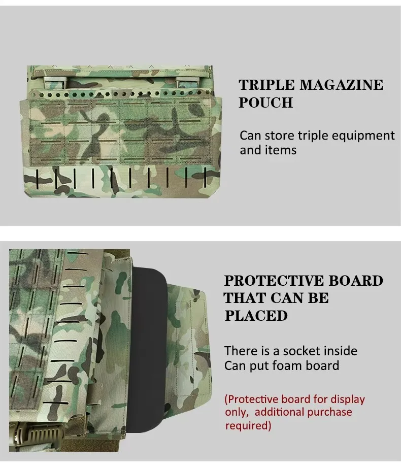 Chaleco táctico de seguridad de poliéster 1000D con Triple equipo, chaleco táctico Molle con corte láser de camuflaje, portador de placa de liberación rápida