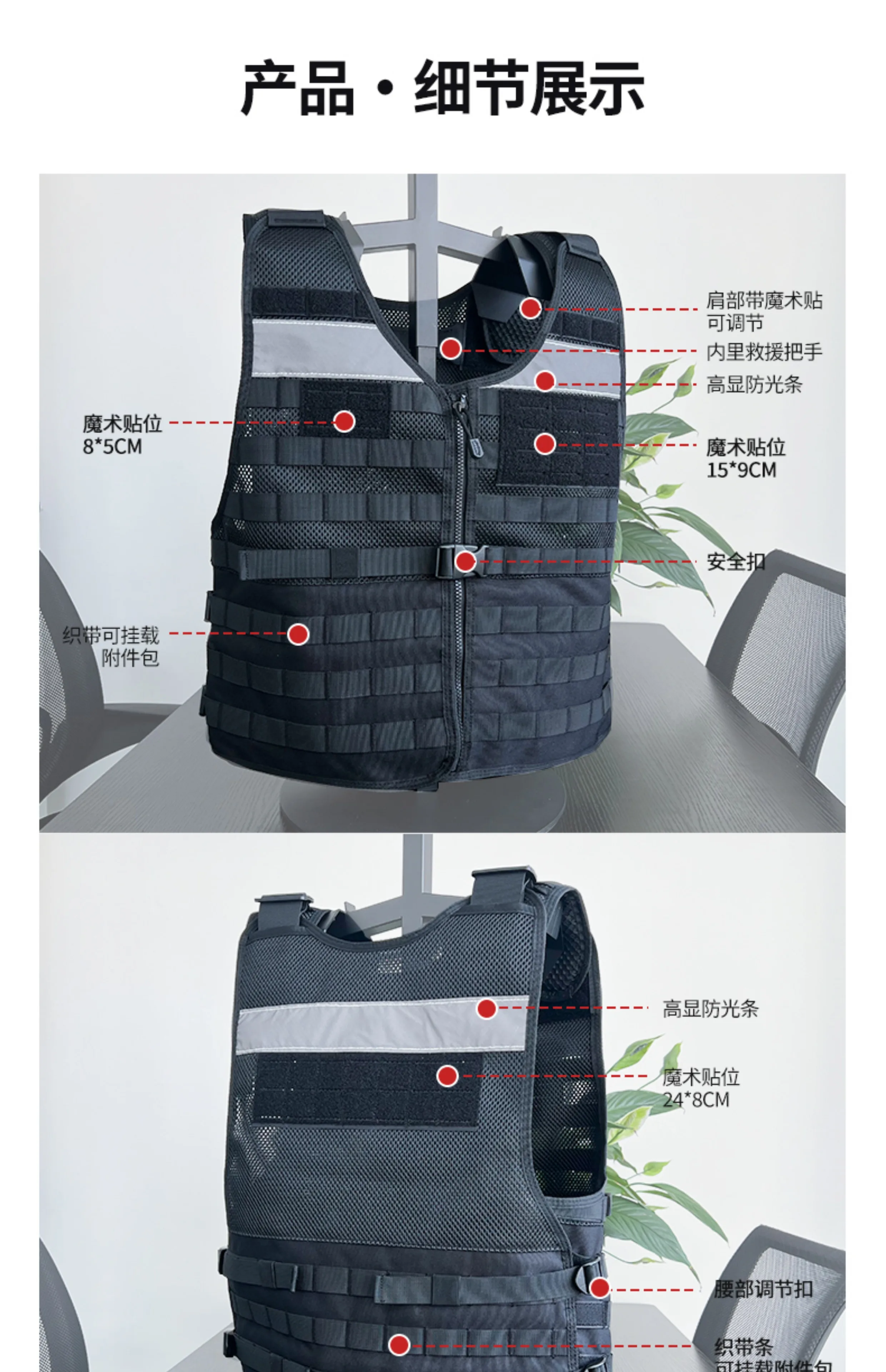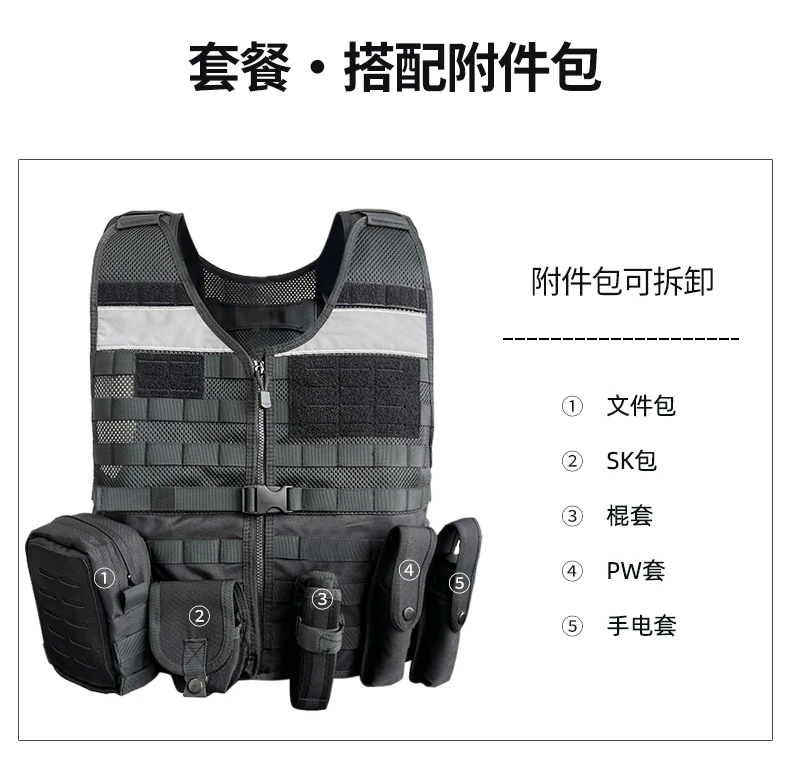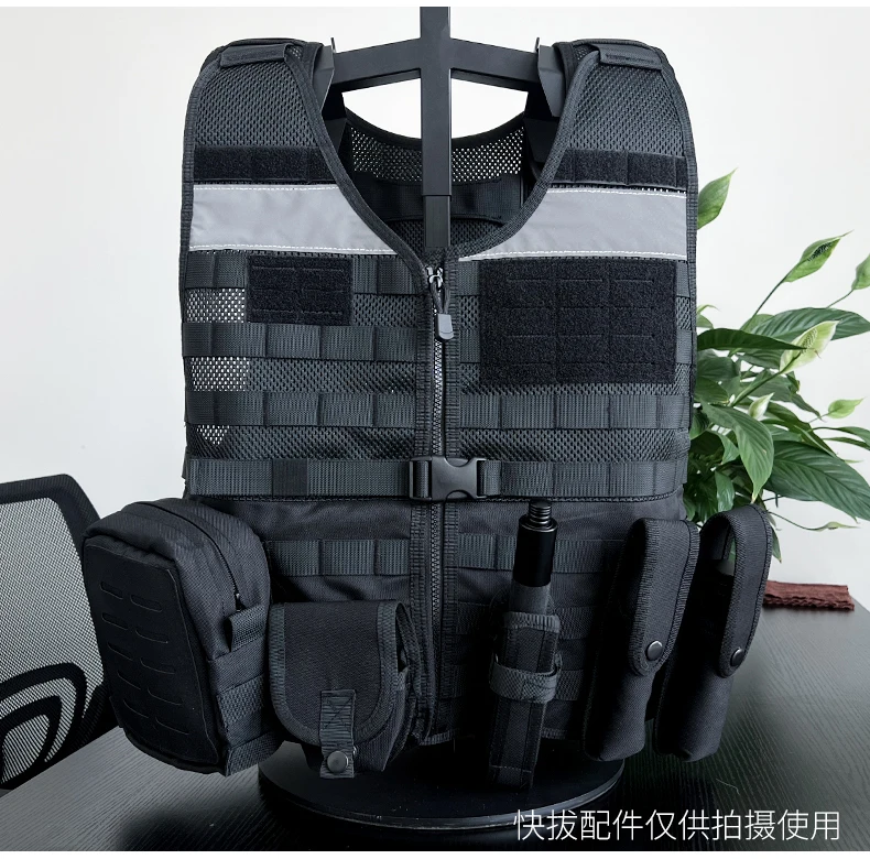 Chaleco táctico de servicio Chaleco de combate multifuncional transpirable negro Chaleco de patrulla