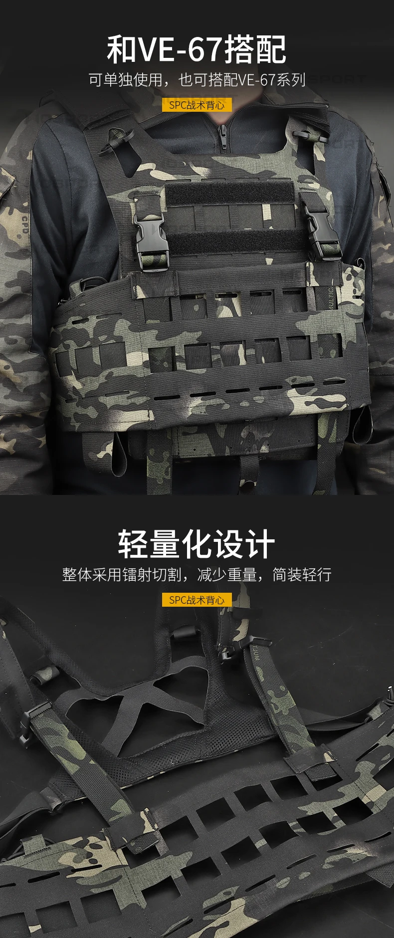 Chaleco táctico SPC ajustable general ligero armadura modular de caza pecho colgando JPC almacenamiento externo sistema MOLLE