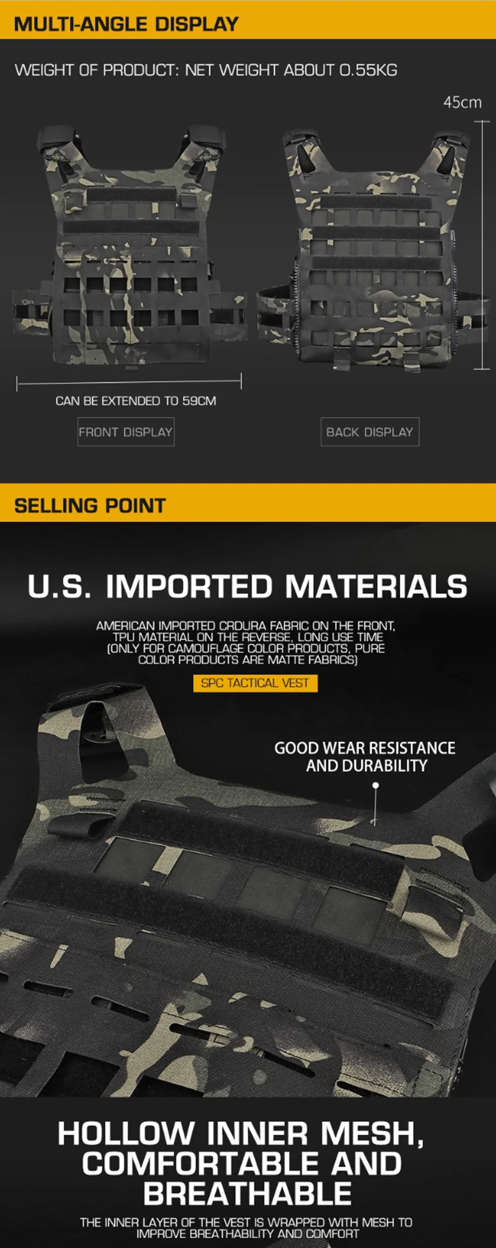 Nombre del producto: chaleco táctico SPC ligero