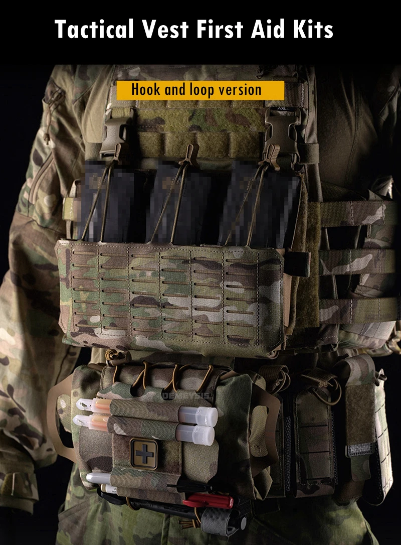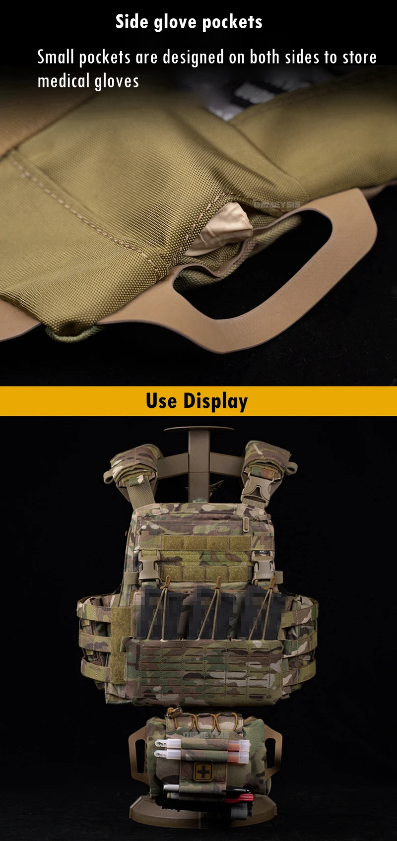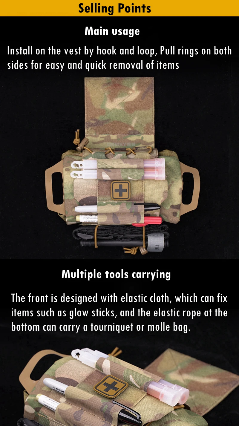 ● Instálelo en el chaleco con gancho y lazo, tire de los anillos en ambos lados para una extracción fácil y rápida de los artículos.