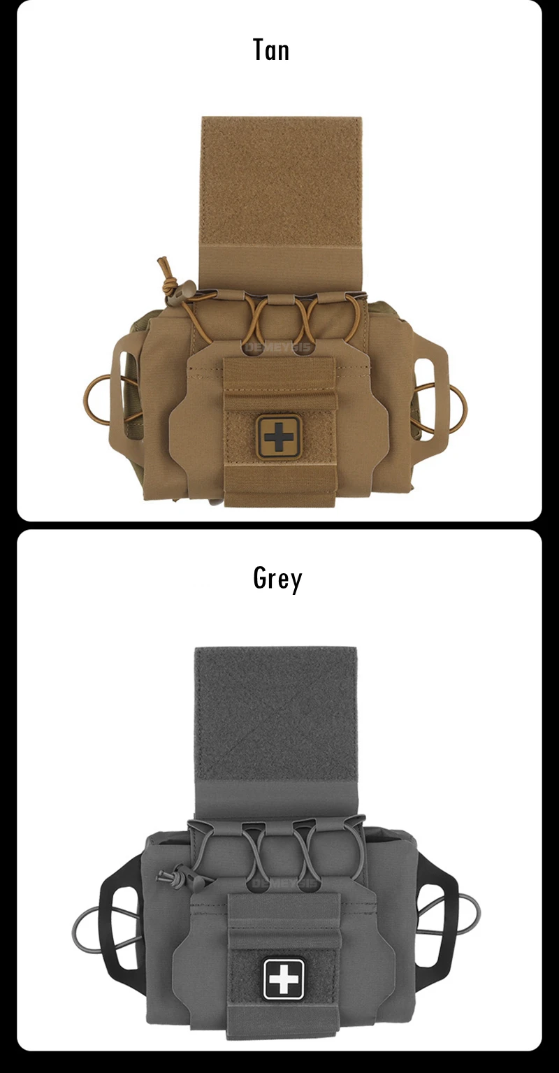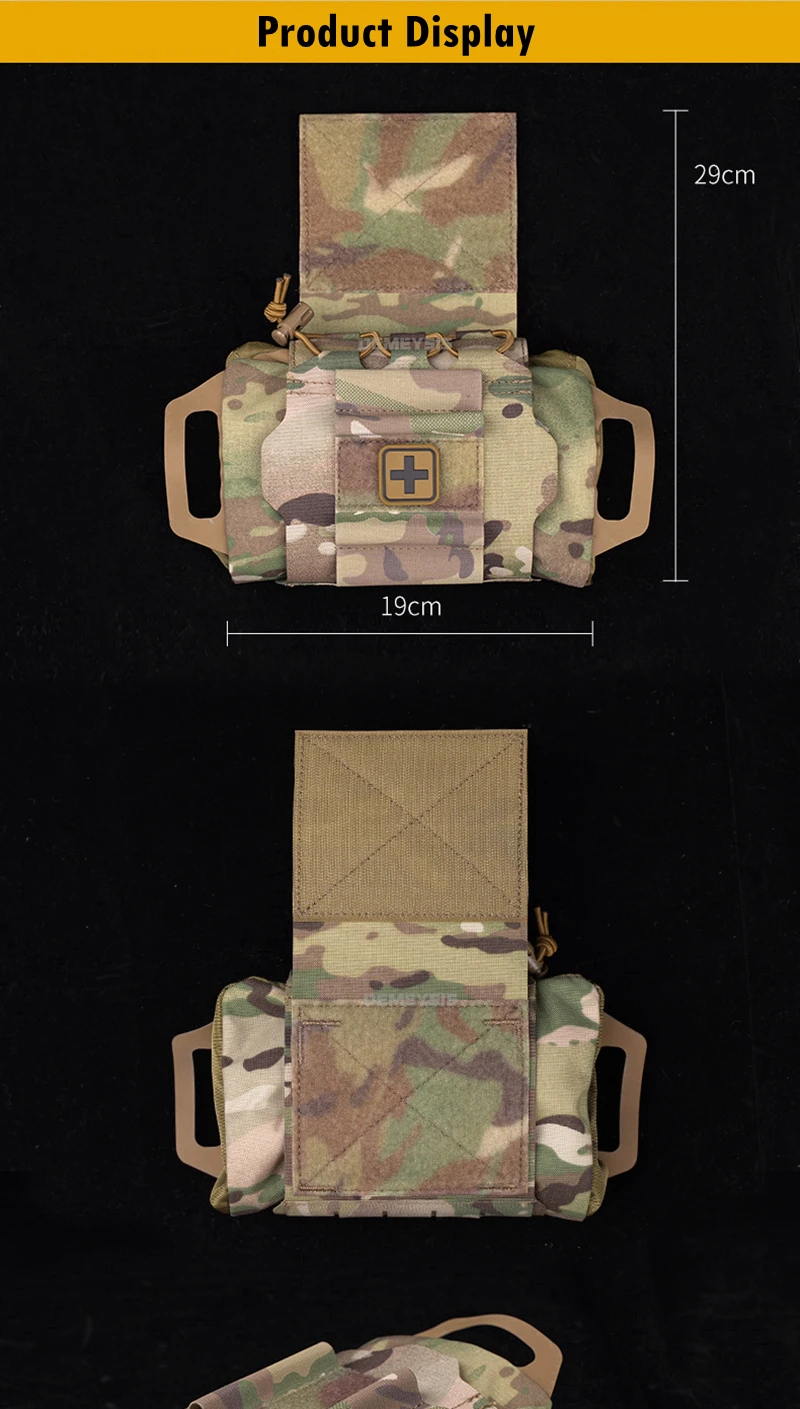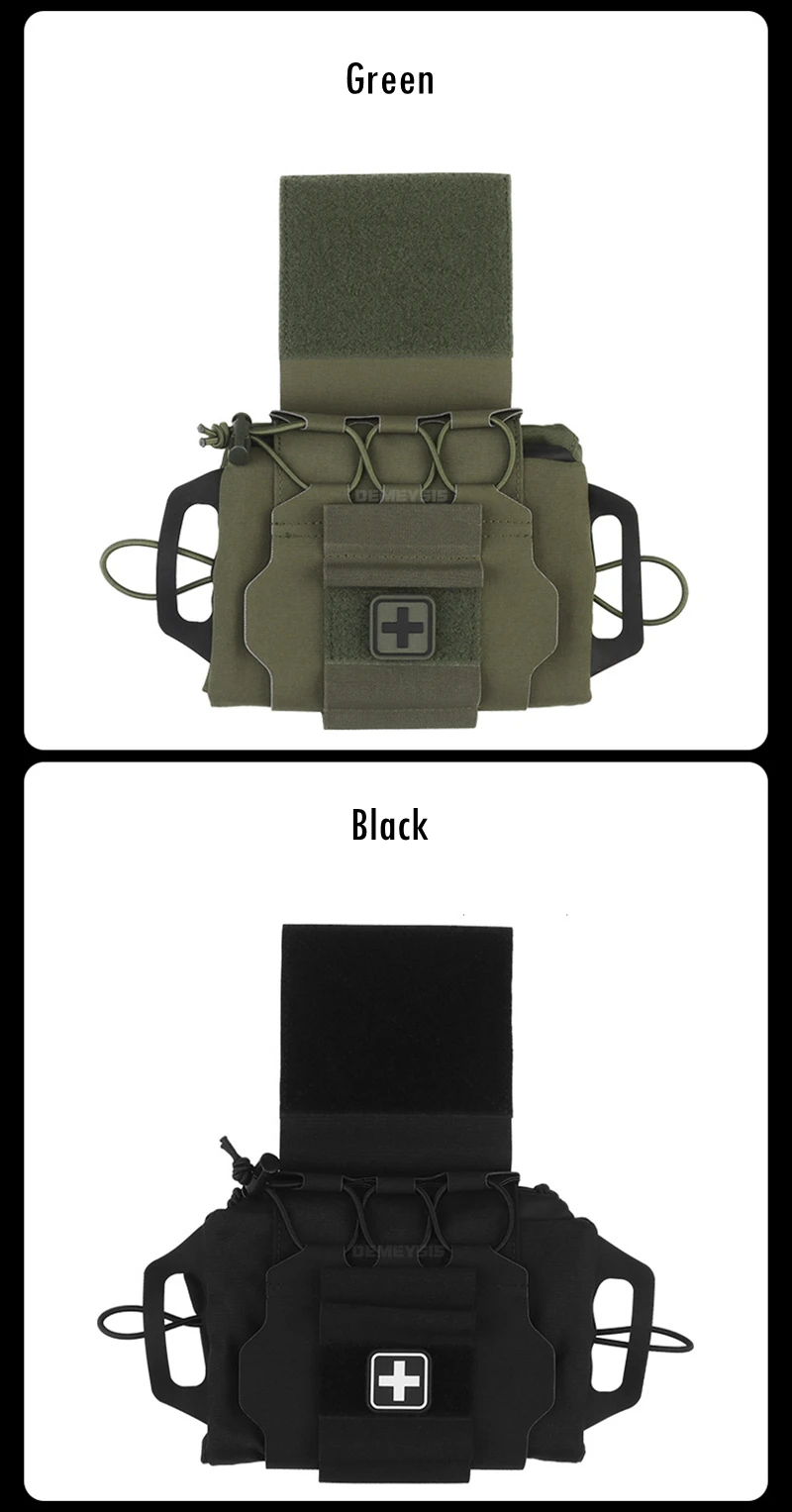 ● Instálelo en el chaleco con gancho y lazo, tire de los anillos en ambos lados para una extracción fácil y rápida de los artículos.