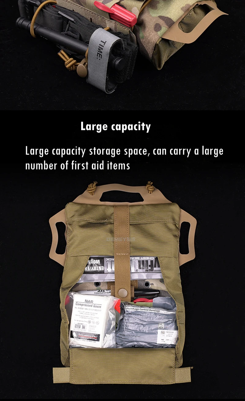● Espacio de almacenamiento de gran capacidad, puede transportar una gran cantidad de artículos de primeros auxilios.