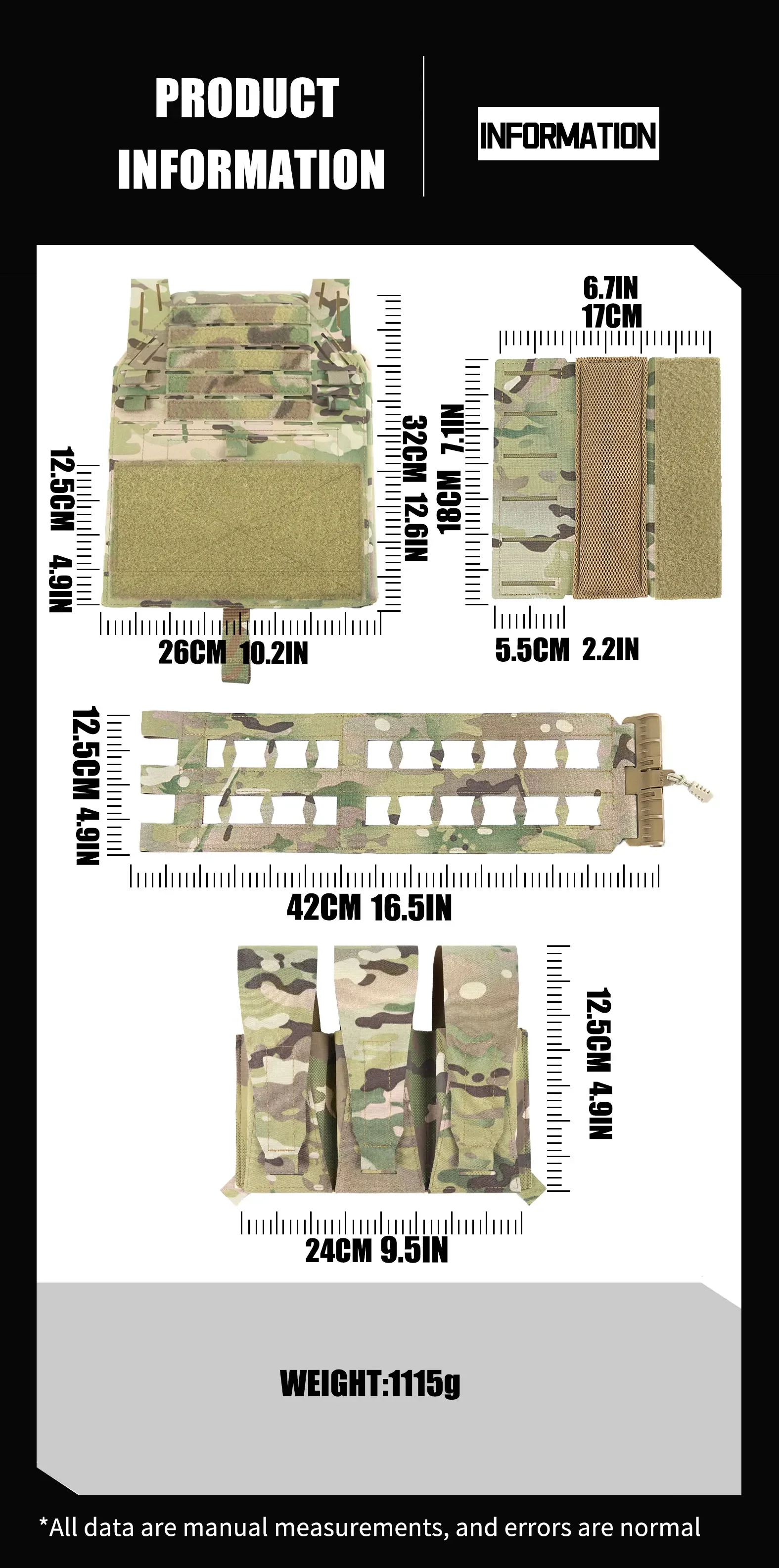 Tiger Full Size V2 7,62/56, bolsa para revistas, bolsa táctica Molle para herramientas, linterna, cuchillo, bolígrafo, bolsa funcional, chaleco, cinturón, riñonera