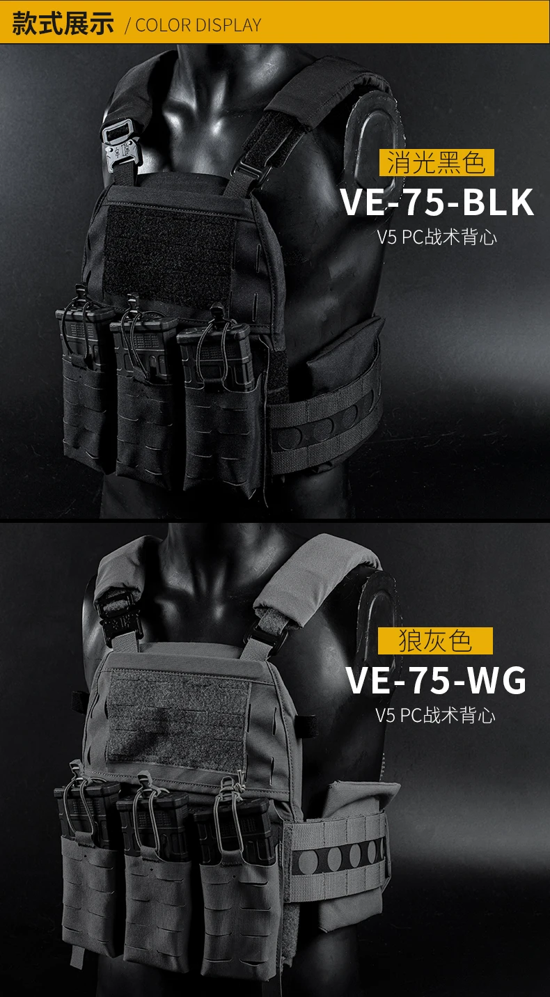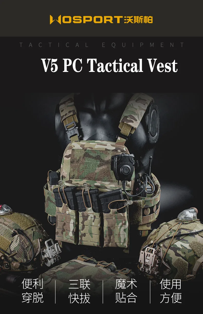 Chaleco táctico V5, portador de placa Molle, chaleco militar ajustable de separación rápida con bolsa de cargador, chaleco MODULAR, accesorios de caza
