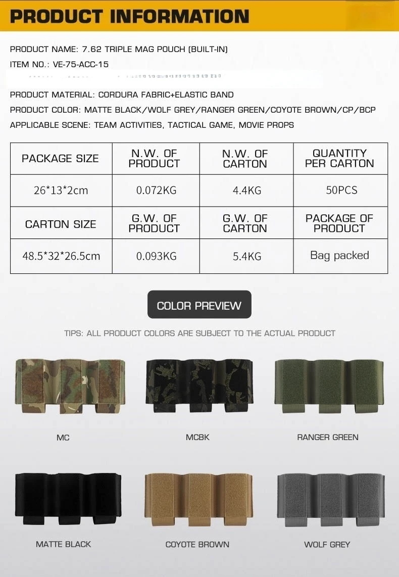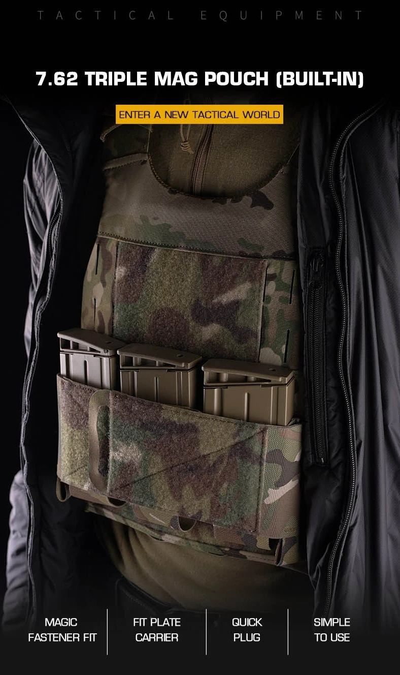 Cuenta con una bolsa triple para cargadores integrada de 7,62, que proporciona un acceso rápido a la munición para rifles MK47/M762/AKM.