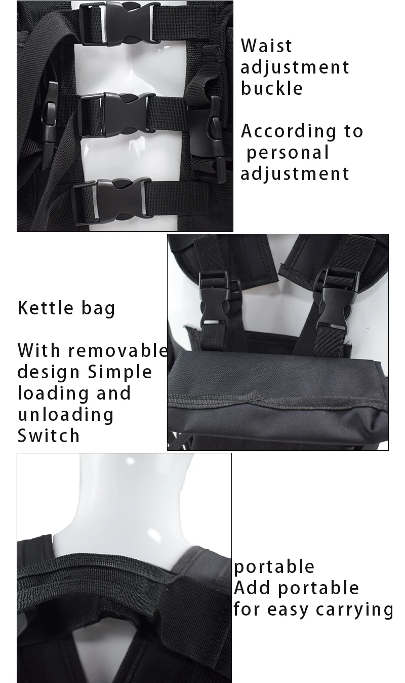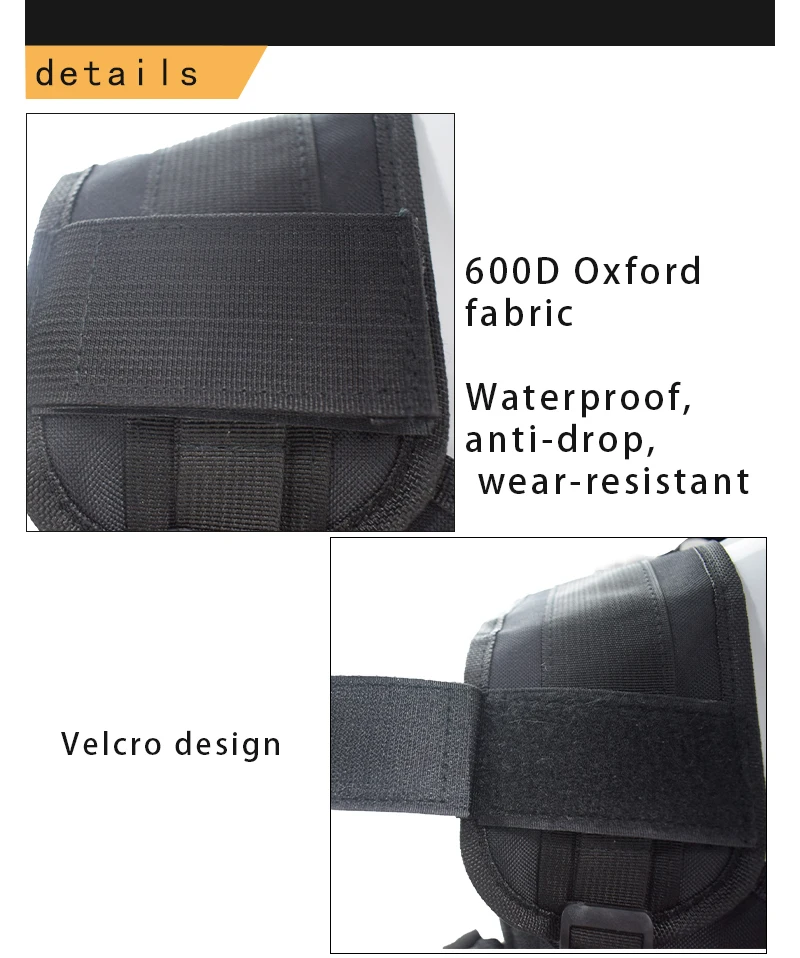 Tela Oxford 1.600D, impermeable, anticaída, resistente al desgaste, diseño de velcro.