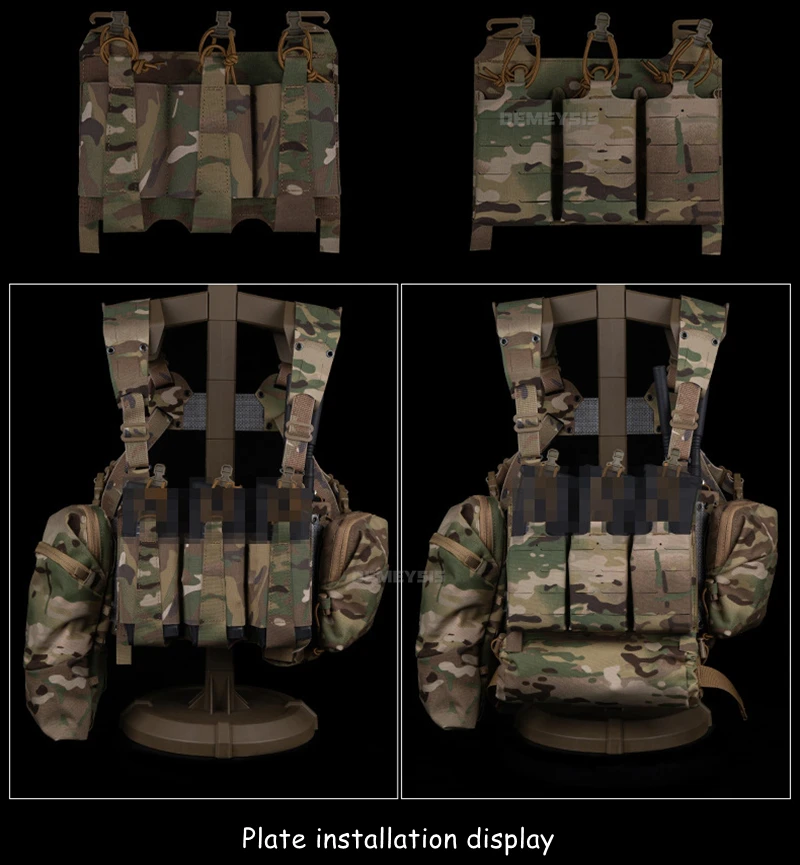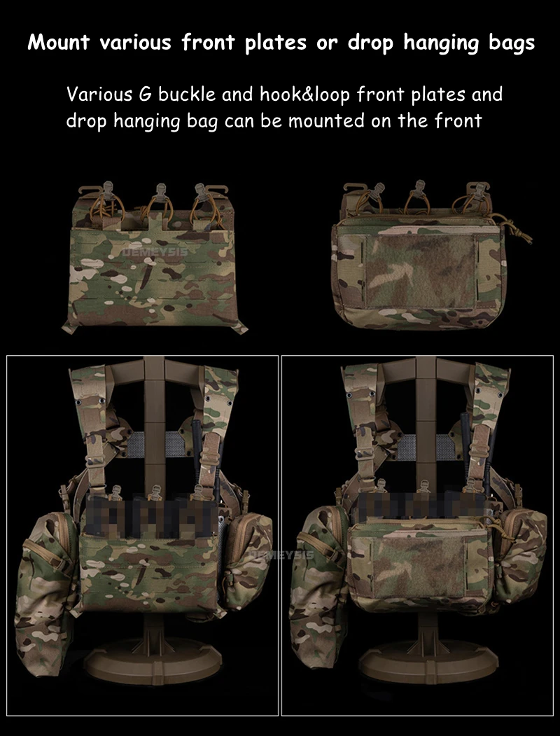 🔫 Panel frontal MOLLE – Se adapta a placas con hebilla G y bolsas colgantes.