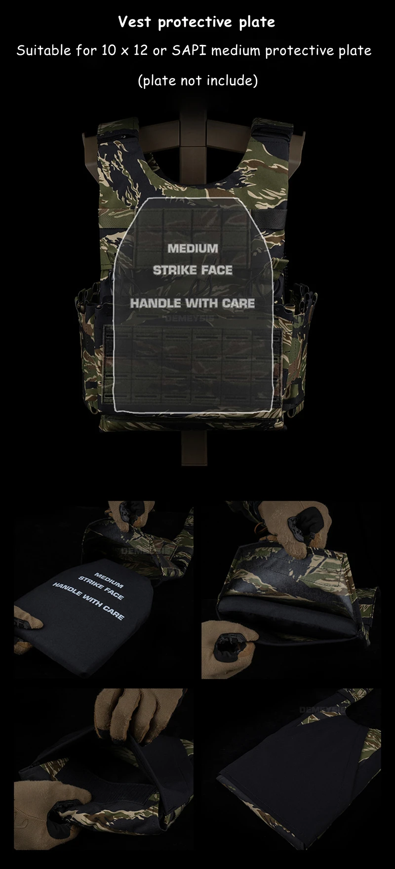 🔹 Listo para platos – Se adapta a armaduras medianas de 10×12" o SAPI (placa se vende por separado)
