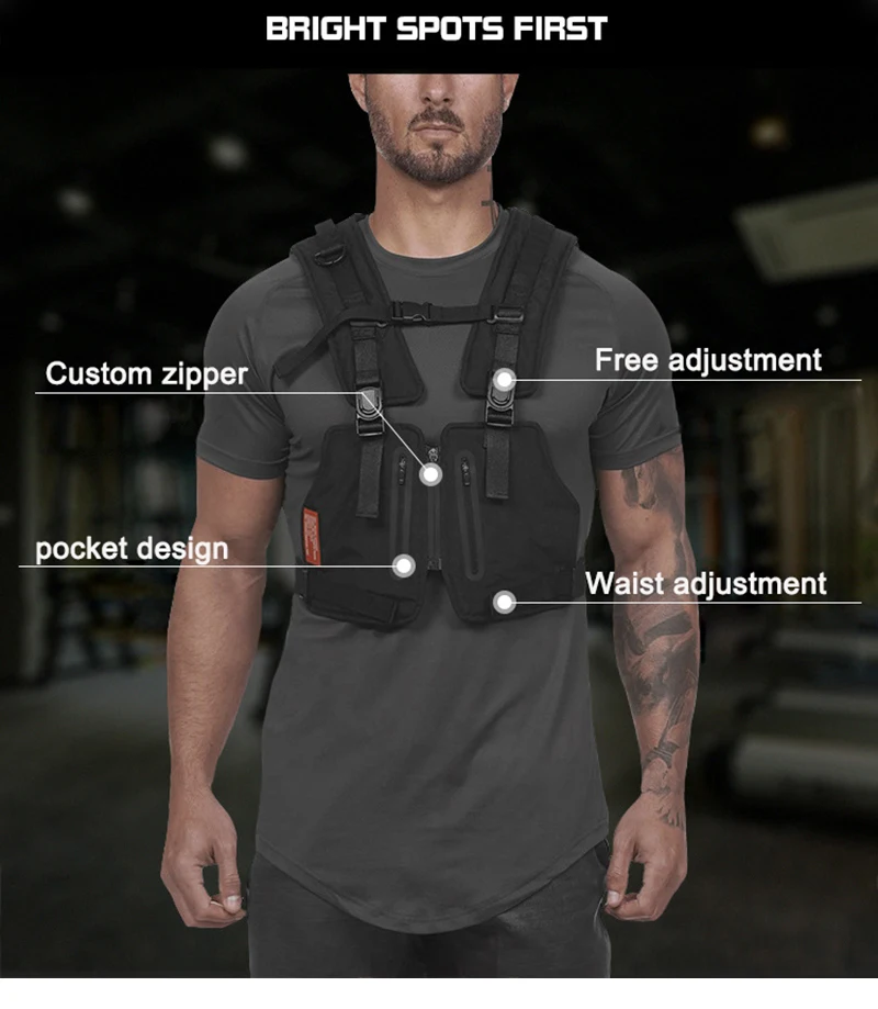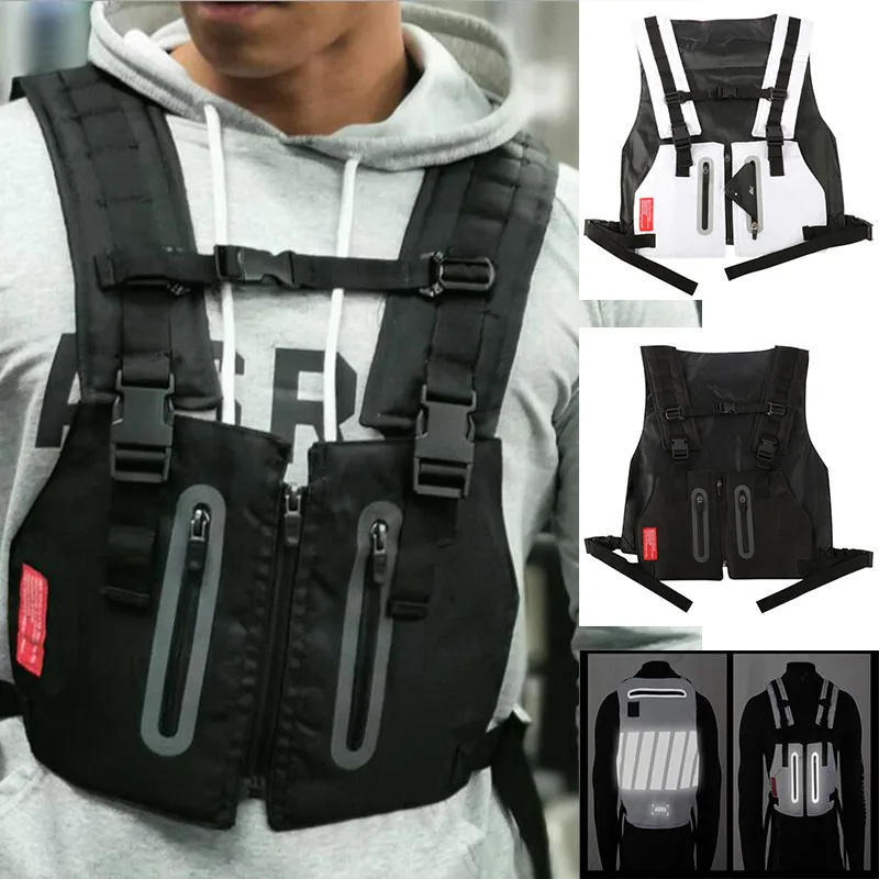 Chaleco táctico militar multifunción, bolsa de pecho para exteriores, Hip hop, deporte, Fitness, hombres, chaleco reflectante protector, chaleco de pesca para ciclismo