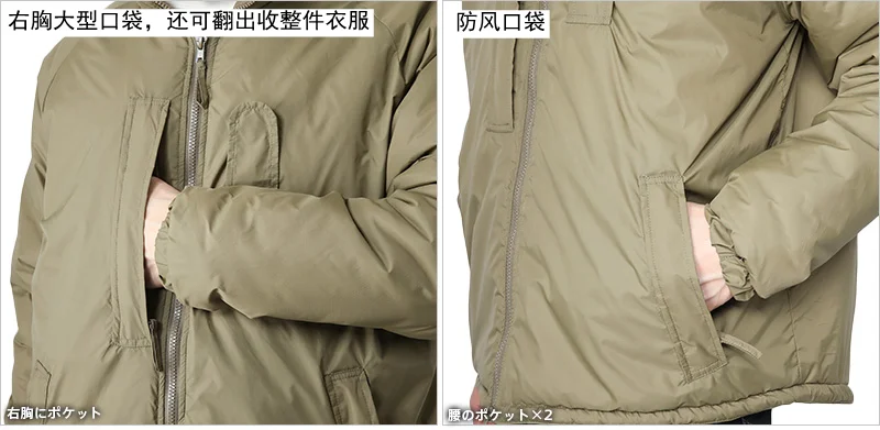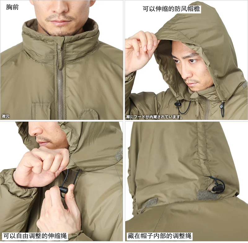 4.Versatilidad: las chaquetas acolchadas de algodón PCS suelen estar equipadas con capuchas ajustables, cremalleras ycierres de gancho y buclepuños, lo que facilita el ajuste según las condiciones climáticas. También se puede usar en combinación con otras prendas del sistema PCS, como chaquetas resistentes al viento o chaquetas impermeables, para formar múltiples capas de protección.