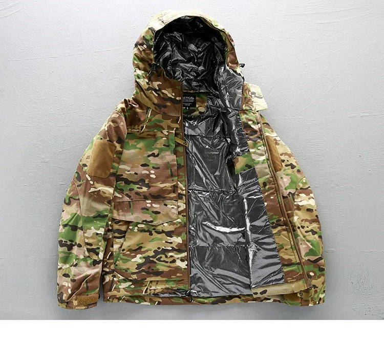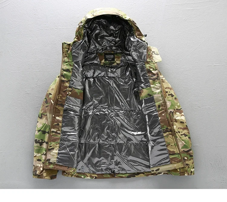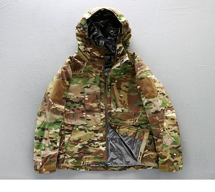Chaqueta de algodón de camuflaje que refleja el calor, abrigo de carga impermeable grueso de invierno para hombre, abrigo táctico acolchado de algodón con capucha