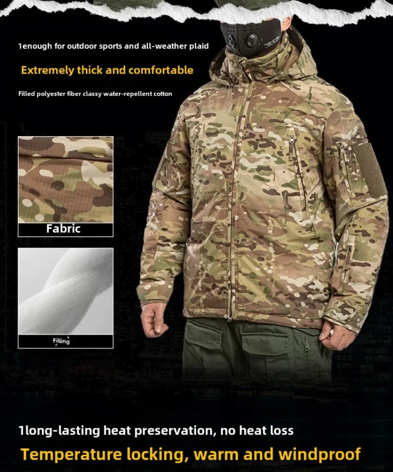 Chaqueta de algodón con capucha táctica gruesa para invierno 4,0, Parkas cálidas impermeables a prueba de viento, ropa de camuflaje para caza y montañismo