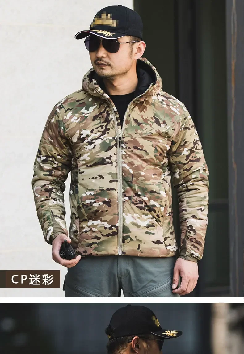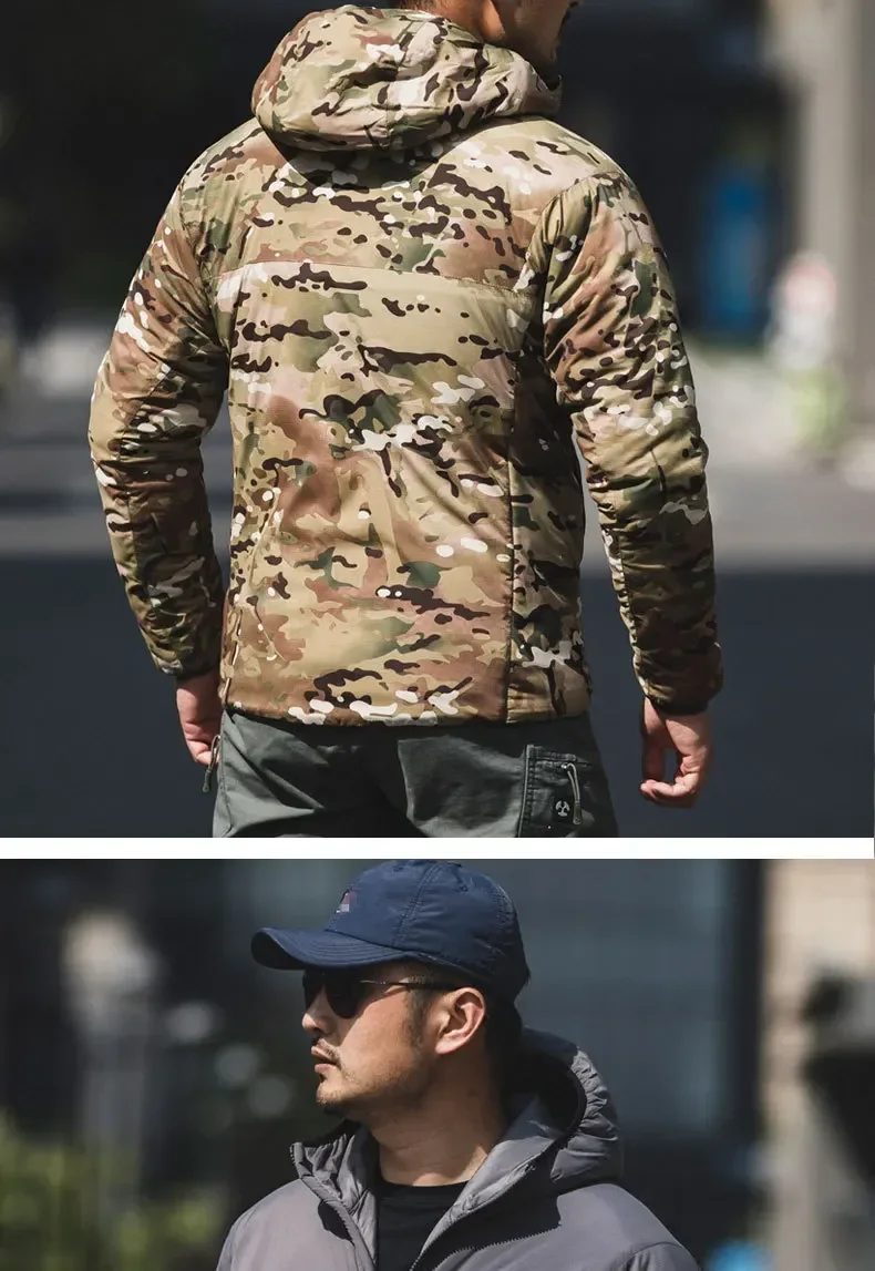 Chaqueta de algodón táctica de camuflaje para hombre, abrigo cortavientos con capucha cálido a prueba de viento para invierno y exteriores, ropa de entrenamiento y senderismo