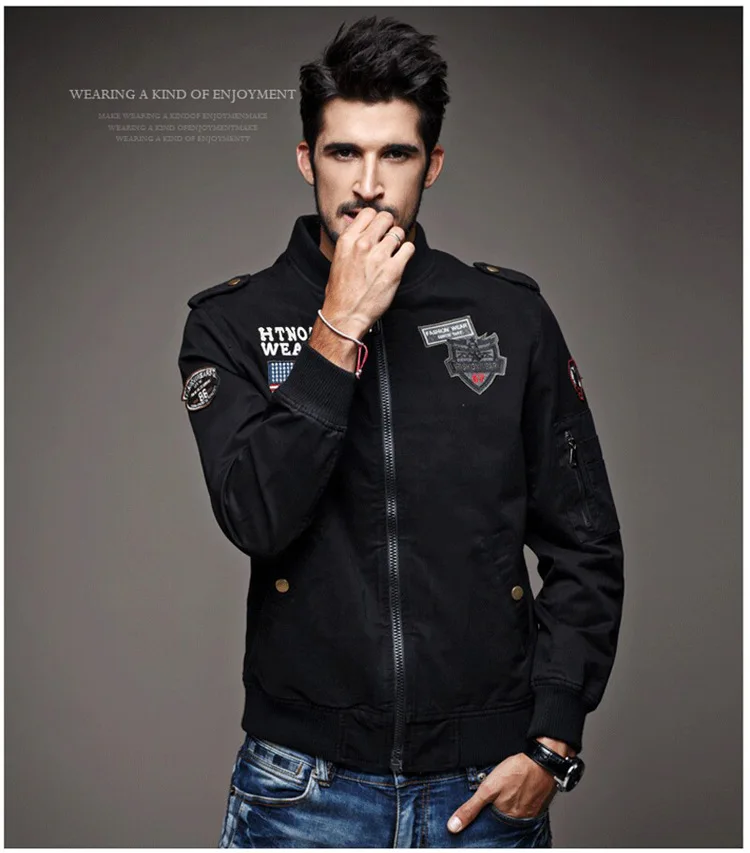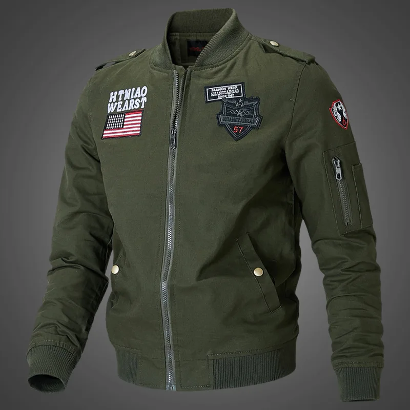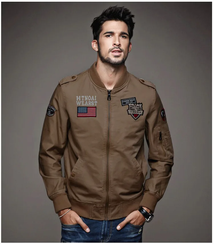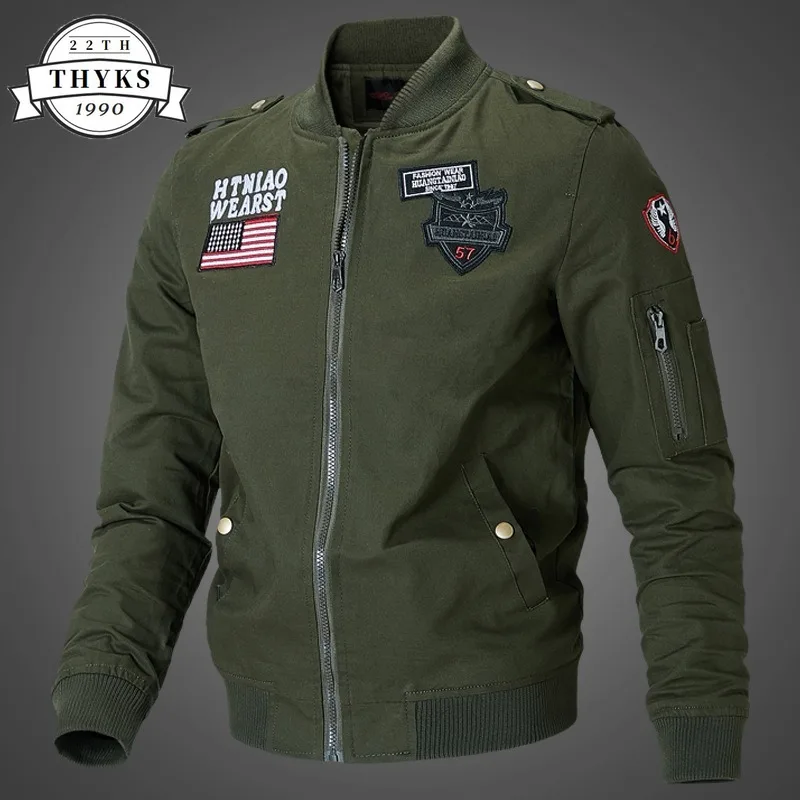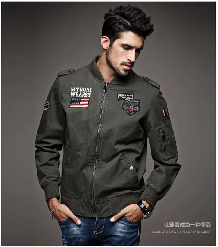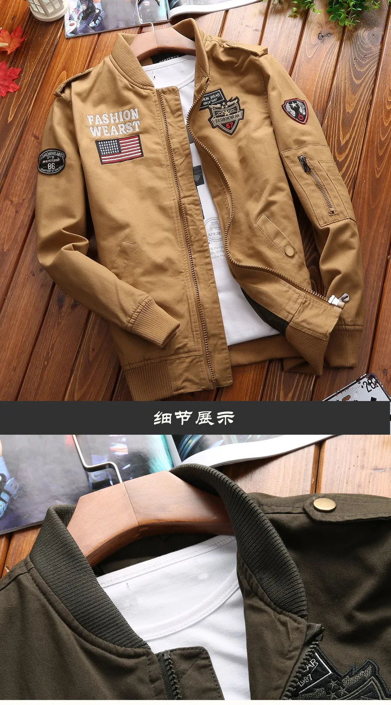 Chaqueta de bombardero militar para hombre, cortavientos con bordado ajustado informal, chaquetas para exteriores, moda nueva, prendas de vestir calientes, primavera Otoño, Ceket para hombre